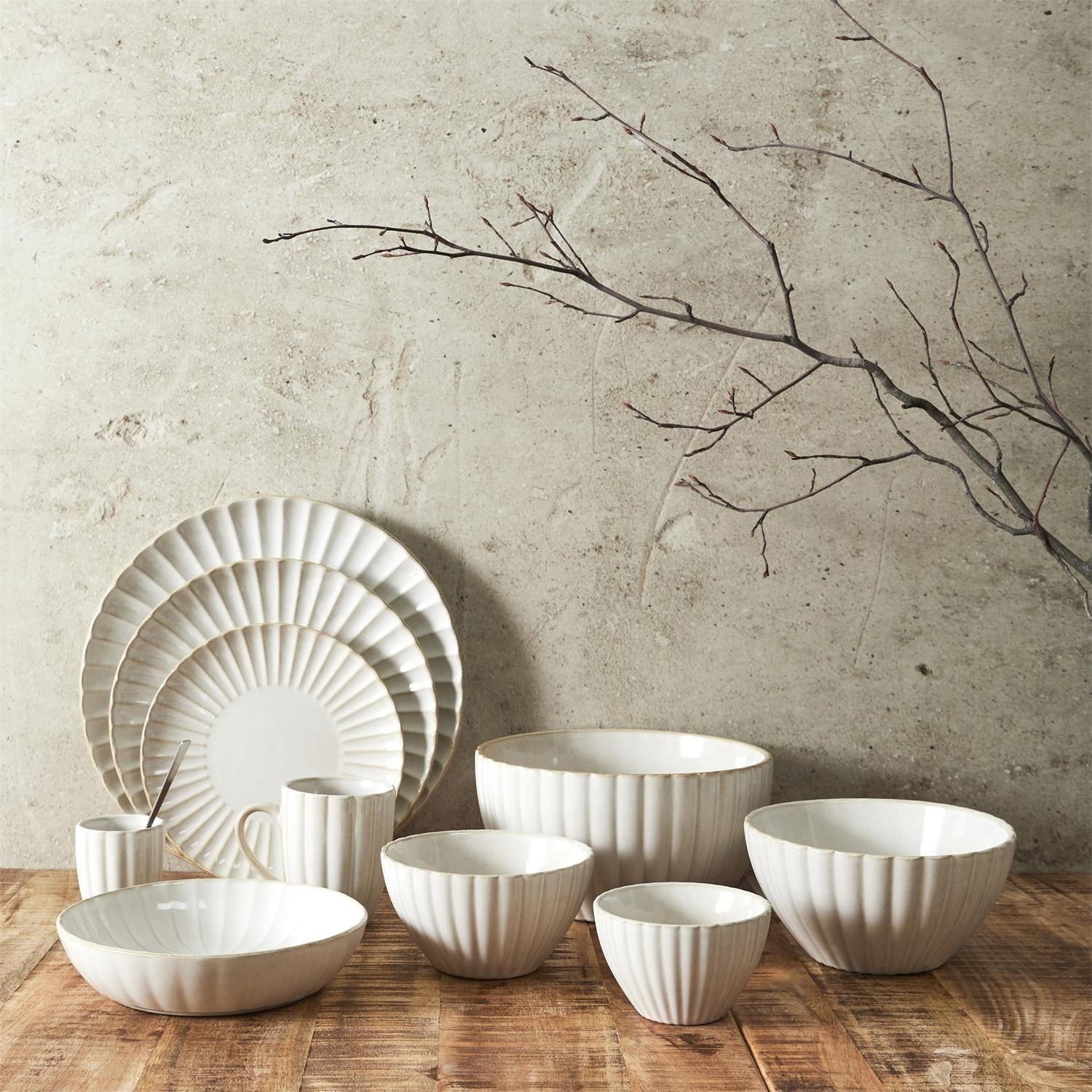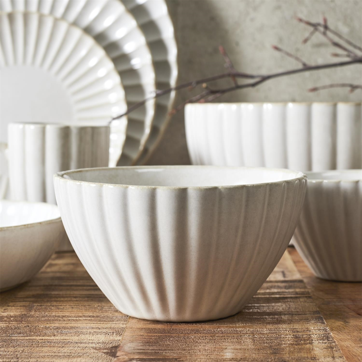 Miska o średnicy 14,5cm Vlora to sztuka sama w sobie. Ciekawy kształt, delikatny, beżowy kolor sprawiają, że zastawa stołowa Vloga jest subtelna a zarazem ponadczasowa. Ryflowane brzegi miski przypominają trochę kształt morskiej muszelki. Miskę można myć w zmywarce, można używać w mikrofalówce. Nie można używać w piekarniku i w zamrażarce. Materiał: ceramika