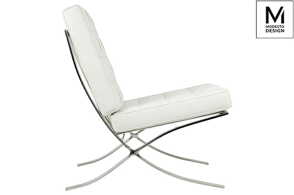 MODESTO fotel BARCELON biały - ekoskóra, stal polerowana