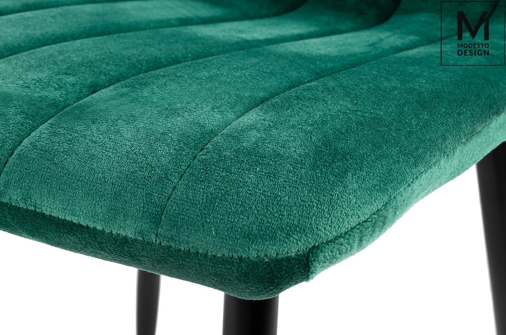 • Krzesło LARA w kolorze zielonym od MODESTO DESIGN. Wyprofilowane oparcie i miękkie siedzisko tapicerowane tkaniną welurową. Podstawa w całości wykonana z metalu lakierowanego na kolor czarny. Prosta i funkcjonalna forma zapewnia komfortowe użytkowanie. Wy