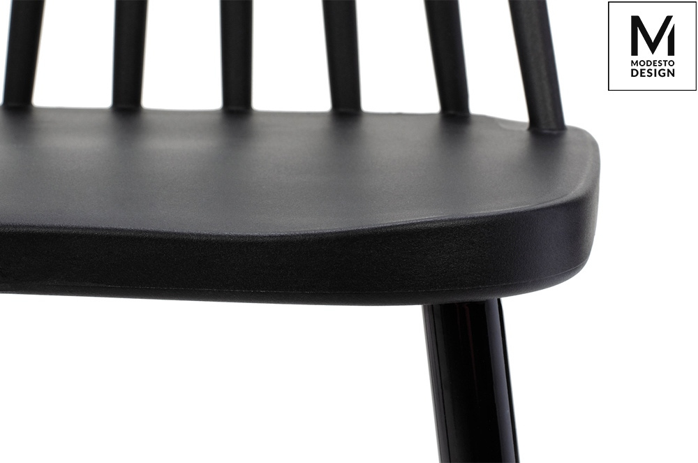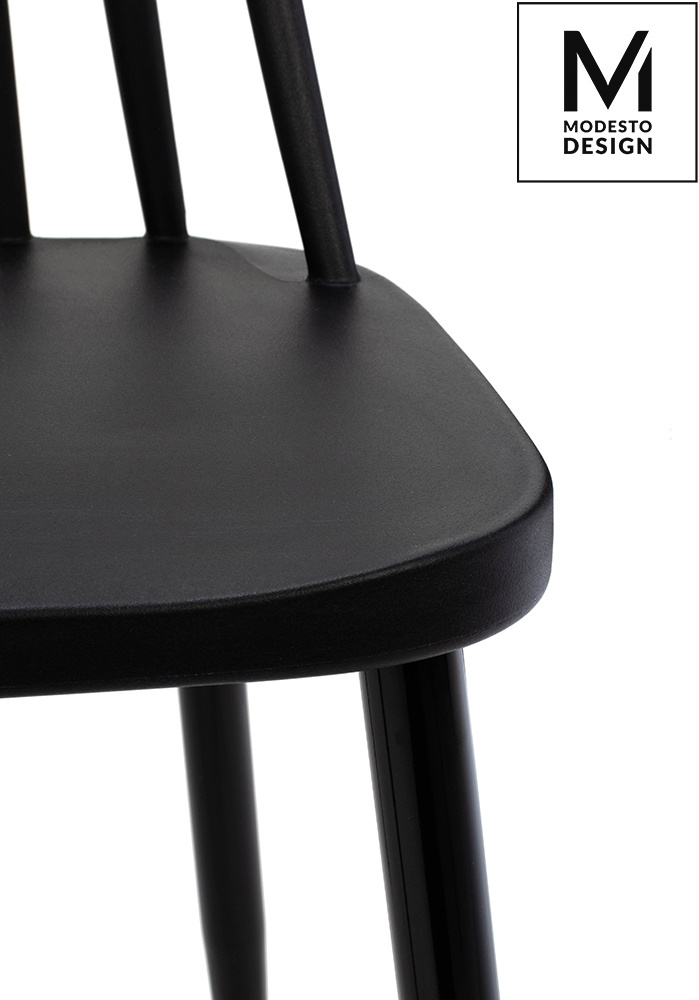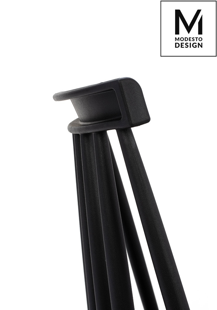 - MODESTO krzesło RIBS BLACK czarne - polipropylen. Stylowe połączenie klasycznej formy z nowoczesnym designem. W całości zostało wykonane z polipropylenu, dzięki czemu jest lekkie, wytrzymałe i odporne na działanie czynników atmosferycznych. Czarne matowe