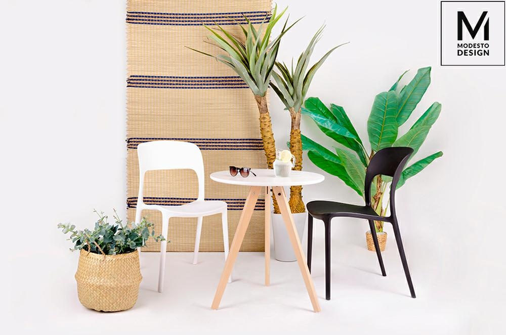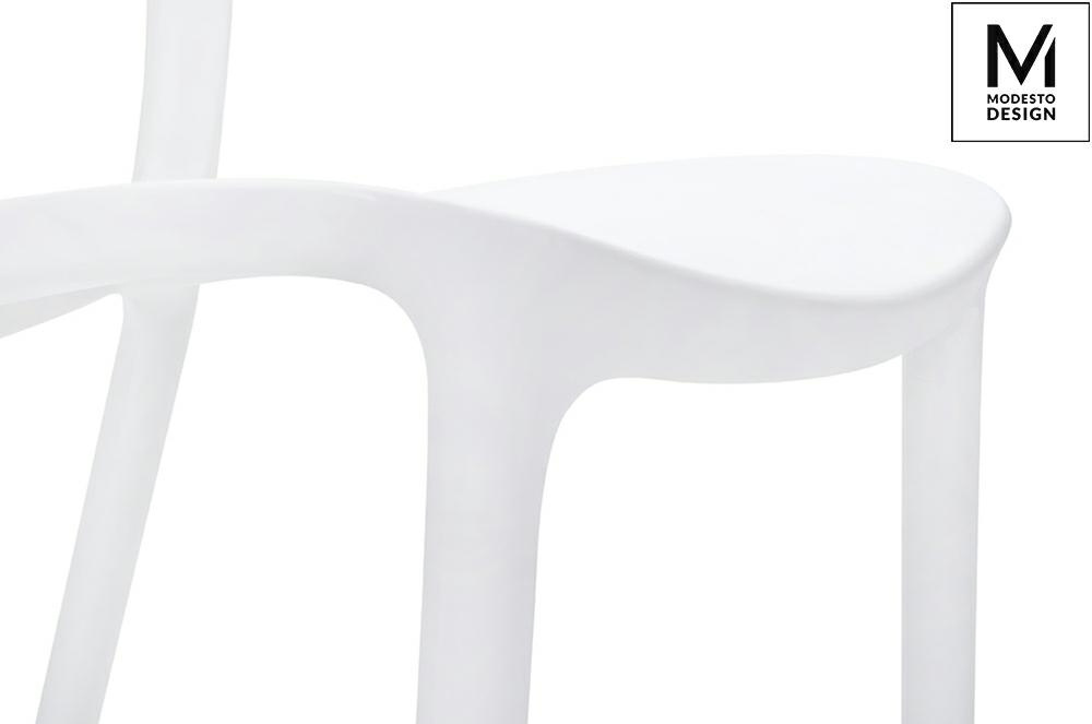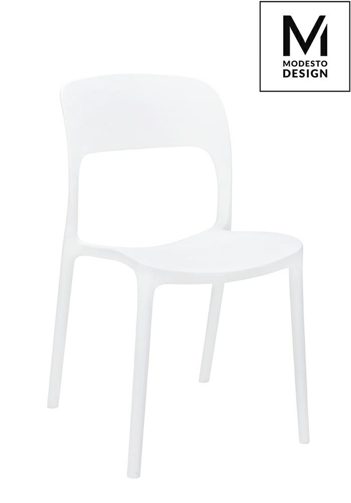 - MODESTO krzesło ZING białe - polipropylen. Połączenie lekkości nowoczesnego stylu z ponadczasowym wdziękiem. Całość wykonano z polipropylenu, co gwarantuje nie tylko estetyczny wygląd, ale także odporność na codzienne użytkowanie i działanie warunków atmo