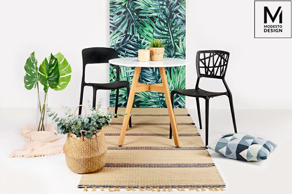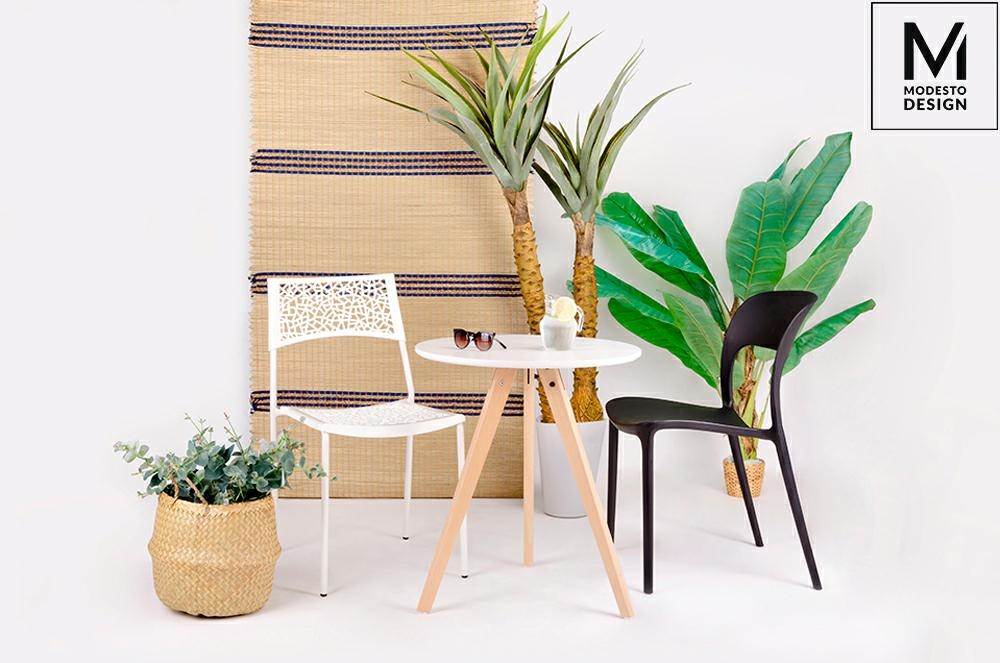 - Krzesło ZING od MODESTO DESIGN. Proste rozwiązania są najlepsze. Zing jest tego idealnym przykładem. Prosta i uniwersalna konstrukcja. Całość jest zrobiona z wytrzymałego polipropylenu w czarnym, matowym kolorze. Krzesło idealne do domu i ogrodu. Dzięki m