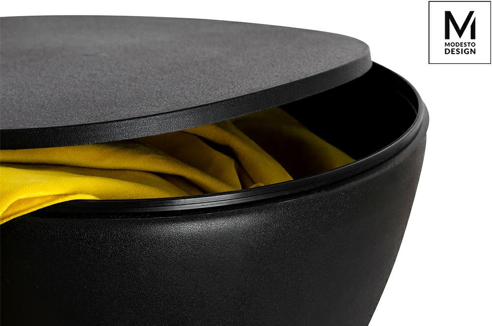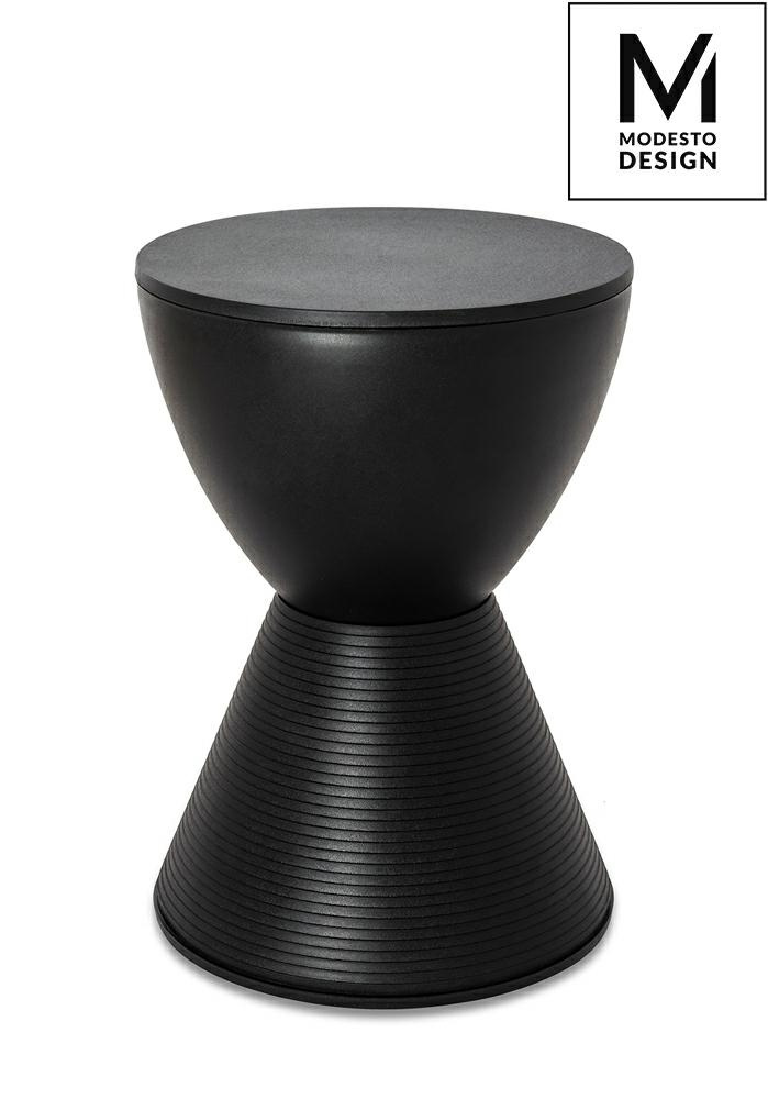 - Stołek TAMBURO marki MODESTO DESIGN. W całości wykonany jest z polipropylenu w kolorze czarnym. Dzięki swojej konstrukcji, stołek może być używany z dwóch stron. Pod każdym siedziskiem jest miejsce do przechowywania drobiazgów. Stołek może służyć jako pod