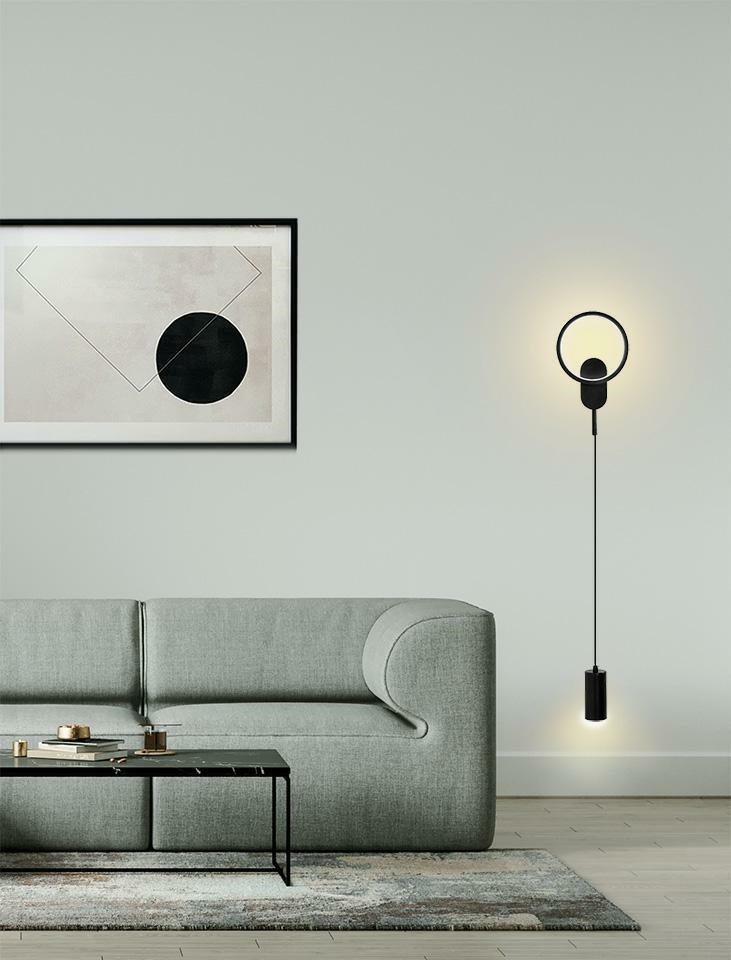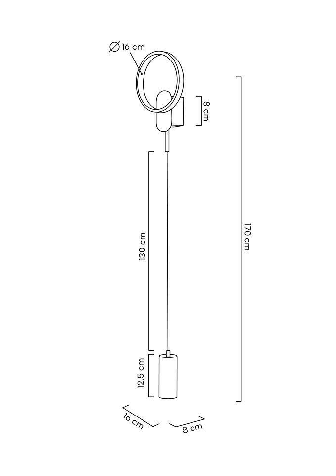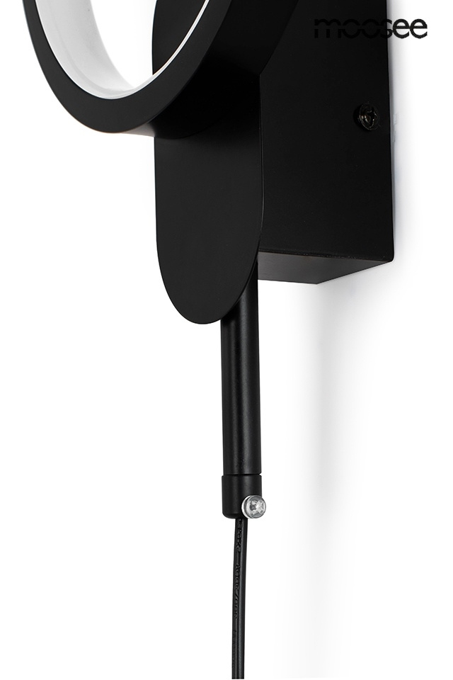 MOOSEE lampa ścienna COMO czarna. Praktyczna oprawa wykonana z metalu w kolorze czarnym z dwoma punktami świetlnymi. Okrągły, górny klosz posiada wbudowane źródło światła. Dolna cześć lampy posiada mocowanie na żarówkę dzieki czemu możemy dopasować barwę światła do własnych potrzeb, a przewód o długości 130 cm umożliwia jej regulację. Como doskonale sprawdzi się w nowoczesnym oraz klasycznym wnętrzu. Światło: LED 9 W + E27 / 720 lm / 3000 K Oprawa: wys. 170 cm / szer. 16 cm / gł. 8 cm Mocowanie: wys. 8 cm / szer. 4 cm / gł. 5 cm Klosz górny: wys. 27 cm / szer. 16 cm / gł. 8 cm Średnica koła led: 16 cm / szer. 2 cm Klosz dolny: wys. 12,5 cm / sr. 5 cm Przewód: 130 cm Montaż: instalacja ścienna Waga netto: 3 kg.Cechy produktu
