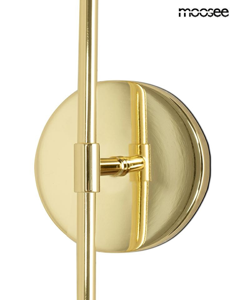 - MOOSEE lampa ścienna IMPERIO złota. Ponadczasowy design z subtelną nutą elegancji. Wykonana w całości z metalu, pokryta luksusowym, złotym wykończeniem. Doskonale sprawdzi się zarówno w eleganckich wnętrzach domowych, jak i w prestiżowych przestrzeniach r