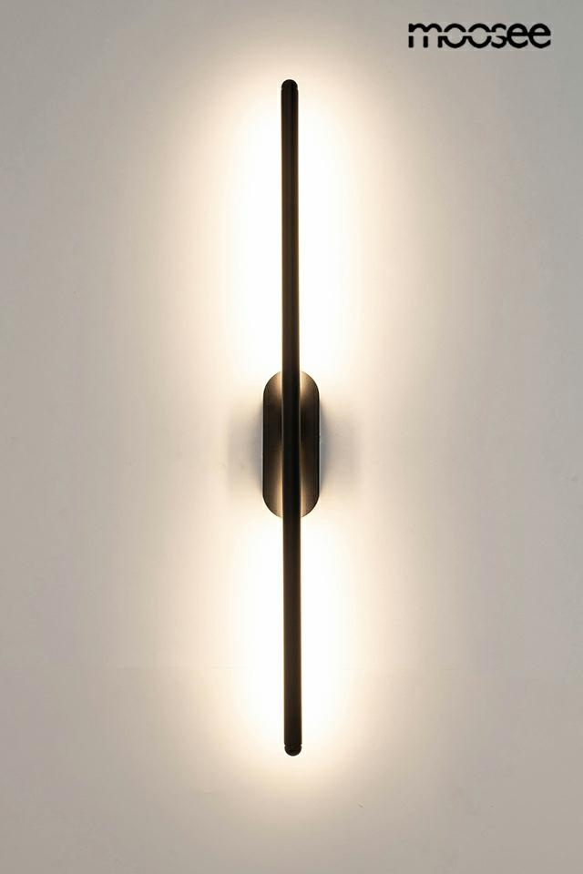 MOOSEE lampa ścienna TOBIA czarna. Oprawa wykonana ze stali w czarnym, stonowanym kolorze. Podłużny klosz można obracać o 360 stopni, dzięki tej funkcji strumień światła ustawimy według własnych potrzeb. Prosty, a zarazem niebanalny styl znajdzie swoje zastosowanie we wnętrzach nowoczesnych i industrialnych. Światło: LED 10 W / 800 lm / 3000 K Oprawa: wys. 60 cm / szer. 5 cm / gł. 6,5 cm Klosz: wys. 60 cm / śr. 2 cm Mocowanie: wys. 13,5 cm / szer. 5 cm / gł. 3 cm Montaż: instalacja ścienna Waga netto: 0,75 kg Wymiary opakowania: 68 cm / 11 cm / 13 cm.Cechy produktu