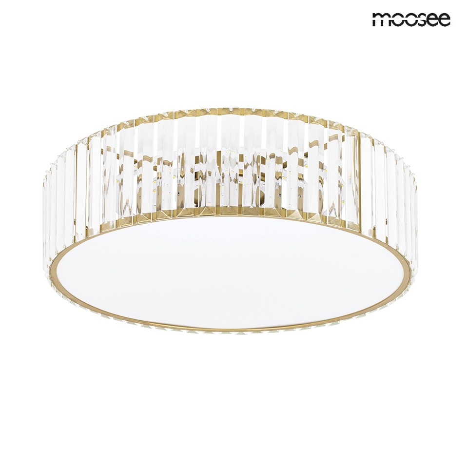 - MOOSEE lampa sufitowa / plafon CROWN 50 złota. Charakterystyczna, błyszcząca oprawa ze złotym akcentem w pałacowym stylu. Przeważający kryształ zamocowany na metalowym stelażu zwraca szczególną uwagę każdego miłośnika wnętrz glamour. Akrylowa osłona wymie