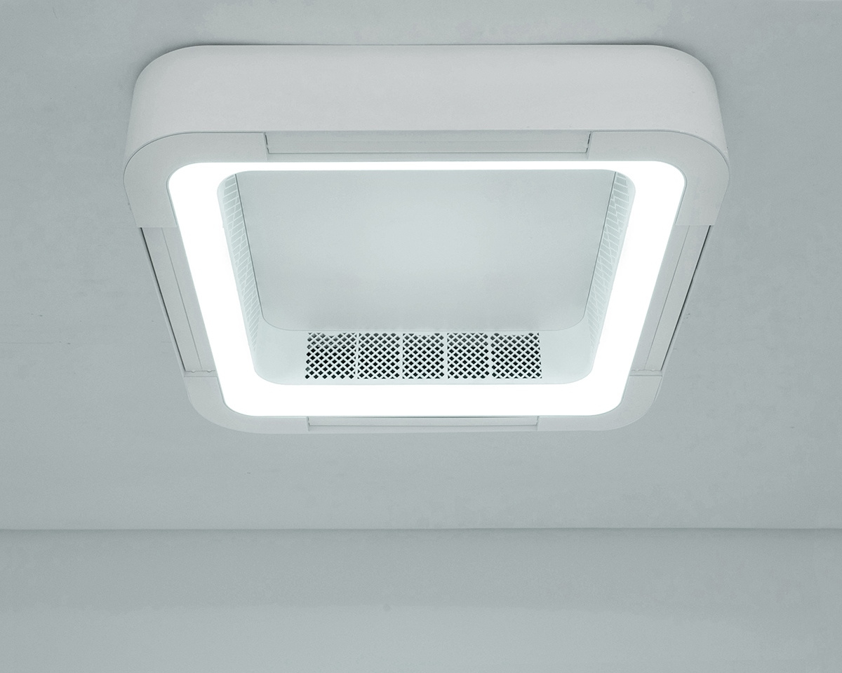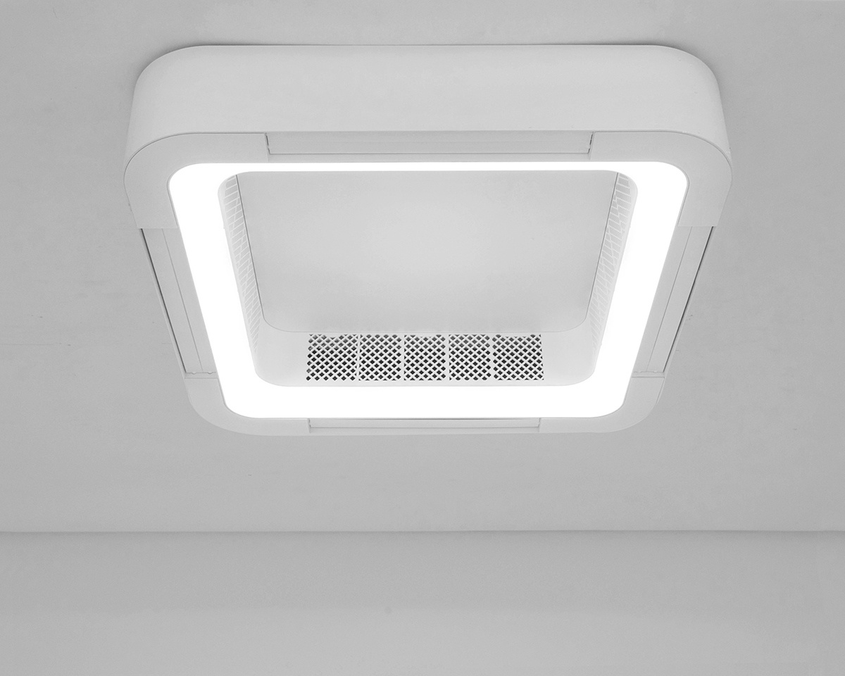 - Nowoczesny plafon z funkcją wentylacji oraz ściemniania światła to doskonałe rozwiązanie do każdego wnętrza oraz biura. Minimalistyczny design wykonano z abs i akrylu, który gwarantuje niezwykłą trwałość i solidność. Funkcja nawiewu oraz możliwość kontrol
