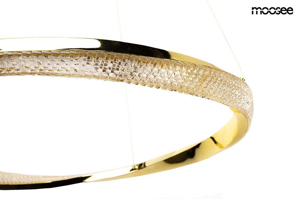 - MOOSEE lampa wisząca ANILLO 60 złota. Nowoczesne oświetlenie, które łączy innowacyjne wzornictwo z pełną funkcjonalnością. Wykonane z metalu i aluminium, zachwyca trwałością oraz dopracowanym wykończeniem. Złota kolorystyka dodaje elegancji i subtelnego b