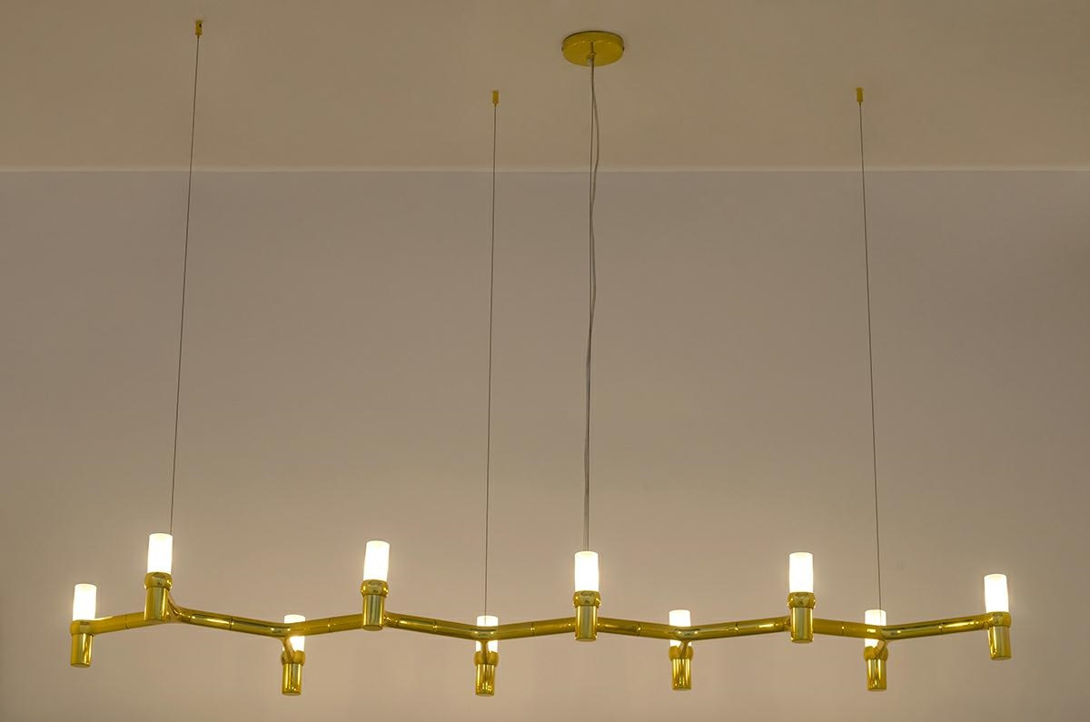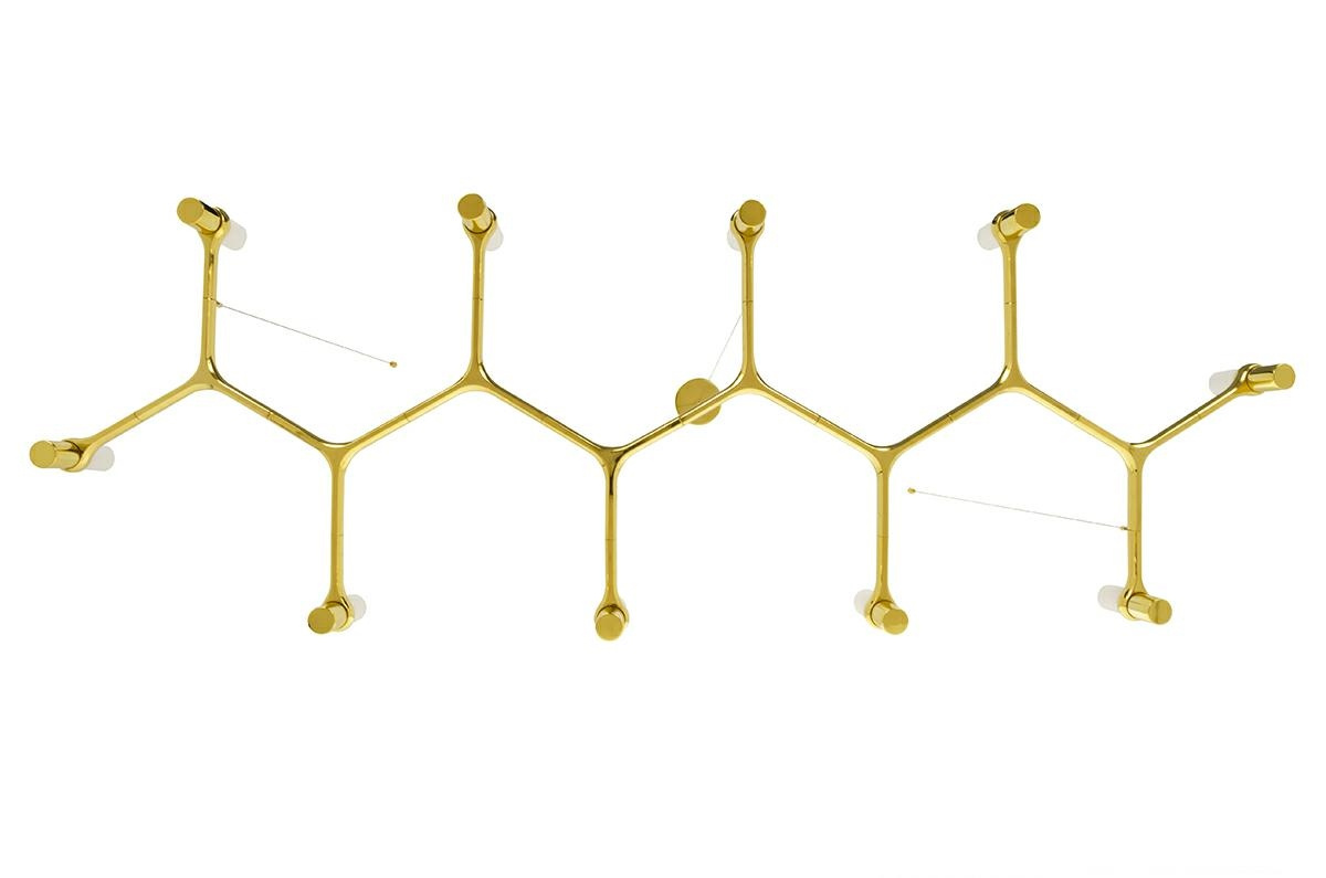 - MOOSEE lampa wisząca Atomic Long. Designerska konstrukcja została wykonana z metalu w kolorze złotym z błyszczącym wykończeniem. Całość zawieszona jest na stalowych linkach oraz metalowej podsufitce. Atomic Long doskonale sprawdzi się nowoczesnych wnętrza