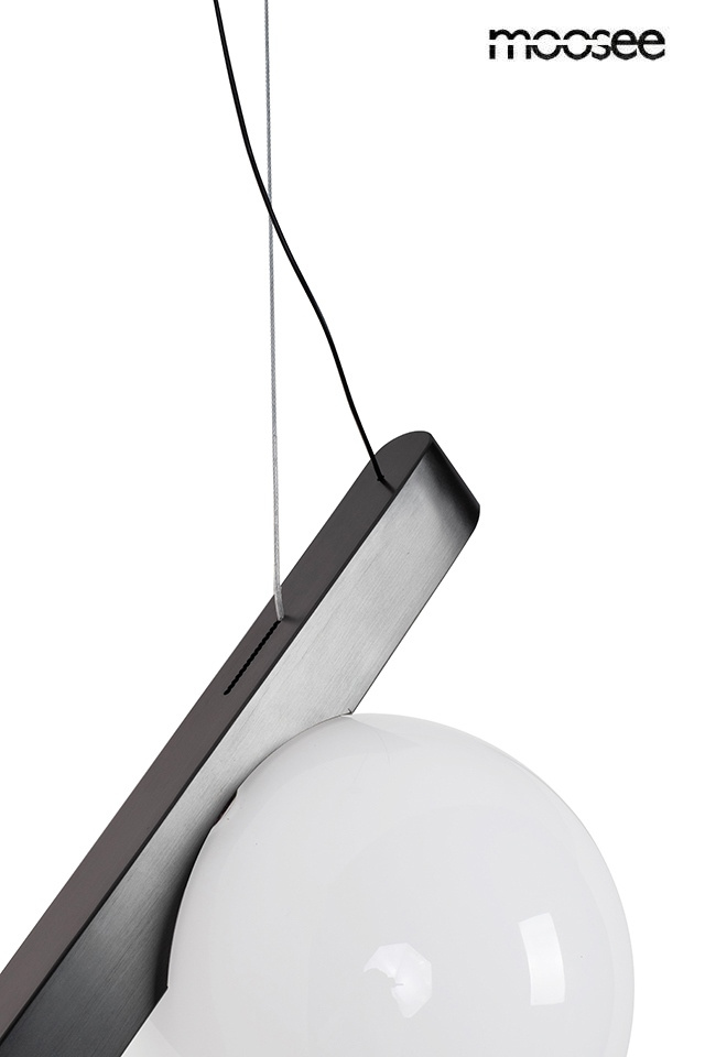 - MOOSEE lampa wisząca BALANCE grafitowa. Unikalne połączenie elegancji i nowoczesnego designu. Wykonana z trwałej stali nierdzewnej w grafitowym odcieniu oraz mlecznego szkła, które tworzy kulisty klosz, dodaje wnętrzu harmonii i stylu. Oryginalna forma, p