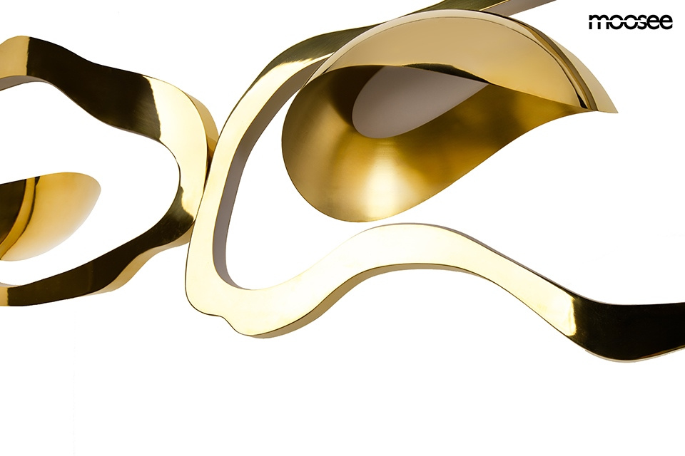 • MOOSEE lampa wisząca CHAIN złota. Spektakularna propozycja dla miłośników sztuki użytkowej i designu, który przyciąga wzrok niczym rzeźba. Trzy nieregularne, organiczne formy zawieszone w lekkim rytmie przypominają plastyczne obłoki lub falujące złote taf