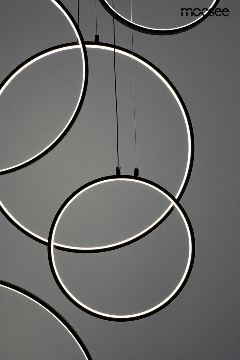 - MOOSEE lampa wisząca CIRCULO SIX czarna. Proste i funkcjonalne oświetlenie wykonane z połączenia metalu i aluminium. Circulo składa się z sześciu lamp o różnych średnicach zawieszonych kaskadowo na jednej podsufitce. Uniwersalny kolor i ciekawa konstrukcj