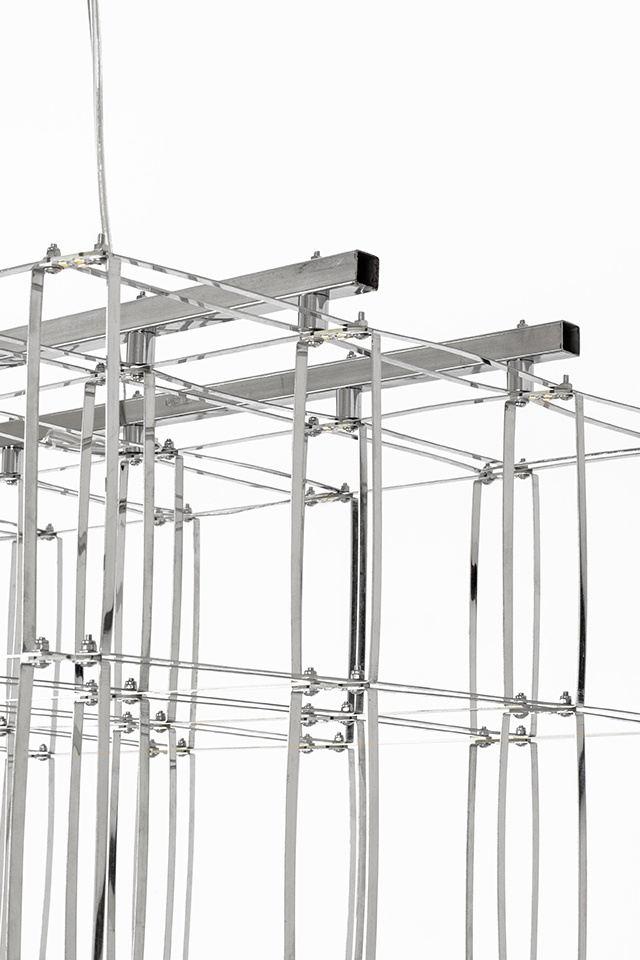 - MOOSEE lampa wisząca CONSTELAR. Konstrukcja lampy wykonana została ze stali szczotkowanej. Całość wyglądem przypomina klatkę której połączenia to Ledowe źródła światła. Tworzy to wyjątkowy efekt wizualny i artystyczny. Lampa polecana do przestrzeni restau