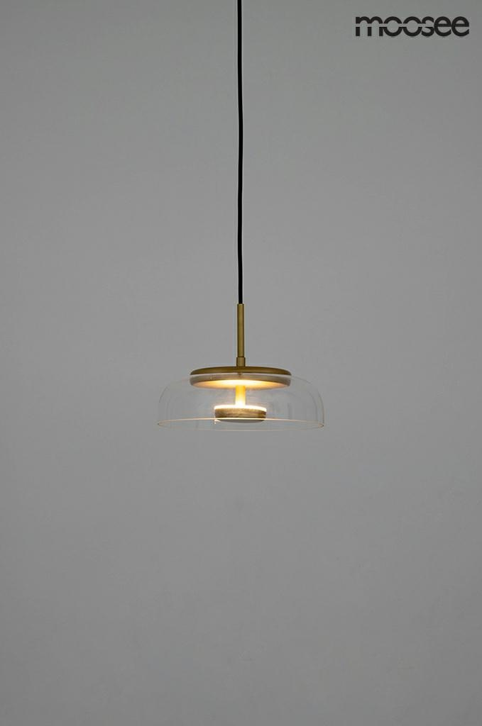 - MOOSEE lampa wisząca EDEN złota. Połączenie stylowego, szklanego klosza i elementów montażowych w kolorze złotym sprawia, że oprawa świetnie sprawdzi się w nowoczesnym wnętrzu, lecz również może zostać ciekawym przełamaniem nieco bardziej surowych aranżac