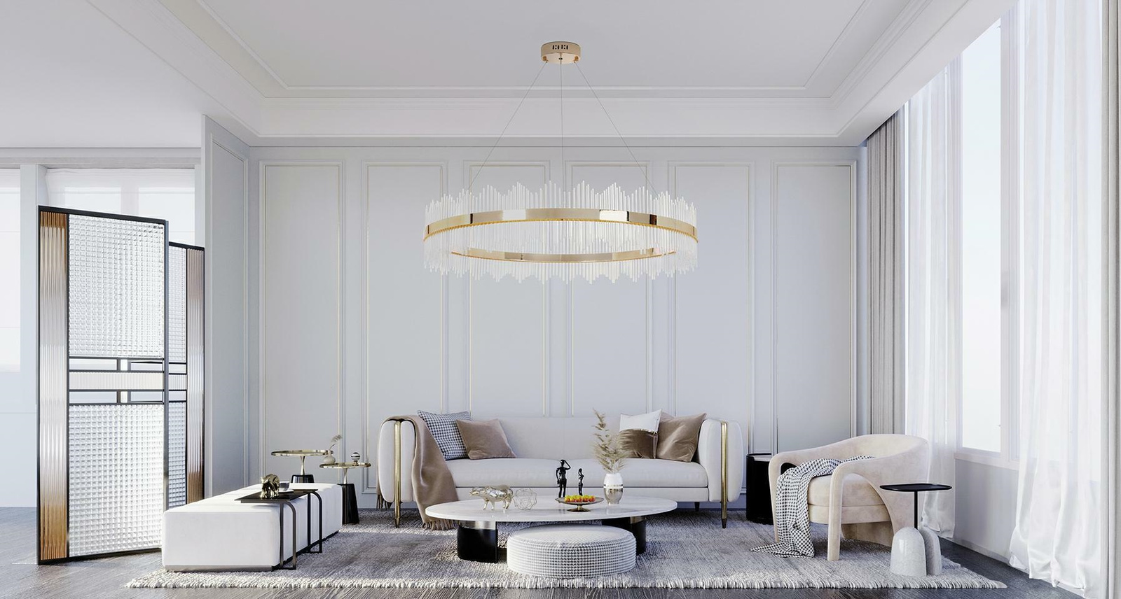 MOOSEE lampa wisząca FLORENS 120 złota. Ekskluzywna i elegancka oprawa, która z powodzeniem ozdobi wnętrza klasyczne i nowoczesne. Szklane, transparentne klosze zamontowano w dwurzędzie na metalowej obręczy, co wyraźnie oddaje efekt kryształu. Światło skierowane w górę i w dół zapewnia optymalne oświetlenie i niesamowity efekt wizualny. W kloszu mogą pojawić się pęcherzyki powietrza, które są naturalnym efektem powstałym podczas ręcznej obróbki szkła. Światło: LED 71 W / 5680 lm / 3000 K Oprawa: wys. 200 cm / szer. 120 cm / gł. 120 cm Klosz: wys. 26 cm / śr. 120 Mocowanie: wys. 5 cm / śr. 15 cm Przewód: 185 cm Montaż: instalacja sufitowa Waga netto: 16 kg Wymiary opakowania: 125 cm / 125 cm / 13 cm.Cechy produktu