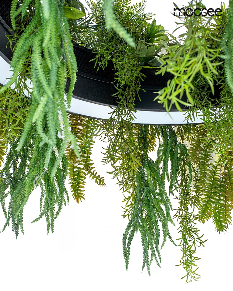 • MOOSEE lampa wisząca GARDENS 160 czarna. Kolekcja Gardens to oryginalny element dekoracyjny, który łączy funkcję oświetlenia z inspiracjami zaczerpniętymi z natury. Jej niepowtarzalny wygląd przypomina bujną roślinność, umieszczoną na stylowym pierścieniu