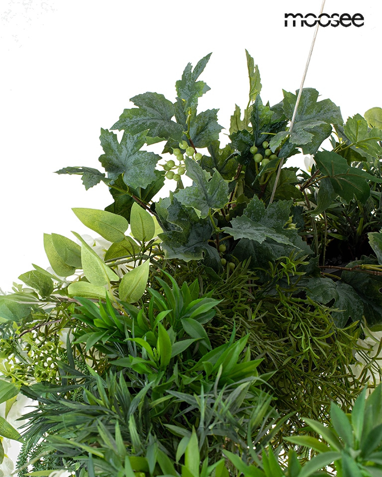 MOOSEE lampa wisząca GARDENS 160 czarna. Kolekcja Gardens to oryginalny element dekoracyjny, który łączy funkcję oświetlenia z inspiracjami zaczerpniętymi z natury. Jej niepowtarzalny wygląd przypomina bujną roślinność, umieszczoną na stylowym pierścieniu. Dzięki dołączonemu pilotowi oraz wbudowanemu ściemniaczowi można zmieniać kolor światła w trzech odcieniach i dostosowywać nastrój wnętrza do własnych preferencji. Lampa jest oferowana w różnych rozmiarach oraz w wersji Wisteria z białymi kwiatami. To doskonały wybór dla tych, którzy pragną wprowadzić do swojego wnętrza odrobinę natury w nowoczesnym stylu. Czas realizacji wynosi do 14 dni roboczych. Światło: LED 212 W / 16960 lm / 3 barwy światła Oprawa: wys. 210 cm / szer. 130 cm / gł. 130 cm Klosz z roślinami: wys. 80 cm / śr. 130 cm Klosz bez roślin: wys. 14,5 cm / śr. 120 cm Podsufitka: wys. 4 cm / śr. 25 cm Przewód: 195 cm.
