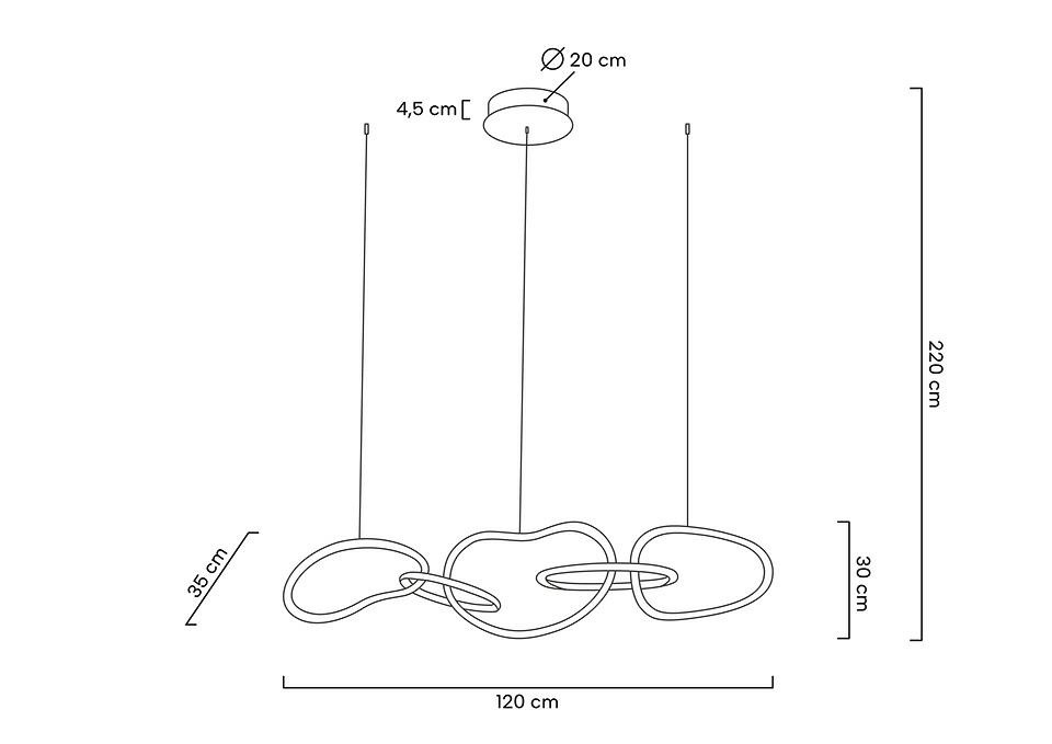 MOOSEE lampa wisząca JAZZ 5. Nowoczesna oprawa, która wniesie styl i szyk do Twojego wnętrza. Całość tworzy 5 pięknych pierścieni o nietypowym kształcie. Gustowne Ringi wykonano ze stali i wykończono w luksusowym złotym kolorze. Źródło światło LED wbudowano na zewnątrz lampy, przez co światło jest jeszcze intensywniejsze. Jazz to idealny sposób na oświetlenie salonu, sypialni czy kuchni. Dostępne różne warianty. Światło: LED 64 W / 5120 lm / 3000 K Oprawa: wys. 220 cm / szer. 120 cm / gł. 35 cm Klosz: wys. 30 cm / szer. 120 cm / gł. 35 cm Mocowanie: wys. 4,5 cm / śr. 20 cm Długość kabla: 190 cm Montaż: instalacja sufitowa Waga netto: 2,95 kg Wymiary opakowania: 130 cm / 40 cm / 35 cm.Cechy produktu