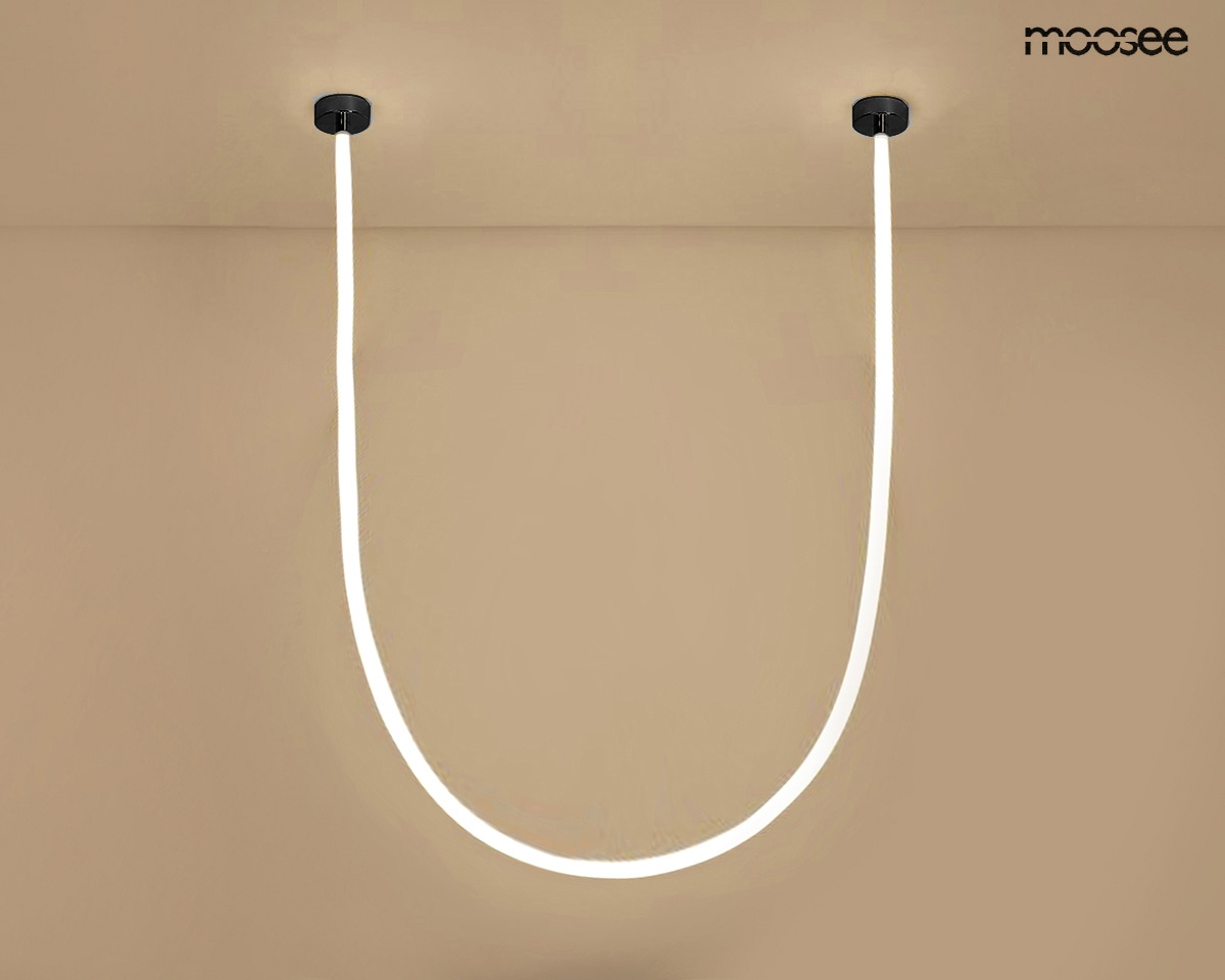 - MOOSEE lampa wisząca LASSO 600 Smart czarna. Luksusowy dodatek do wnętrza, łączący funkcjonalność oświetlenia z eleganckim designem ze stali. Możliwość łączenia różnych rozmiarów lampy pozwala na stworzenie unikalnych konfiguracji. Lampa może przybrać ksz