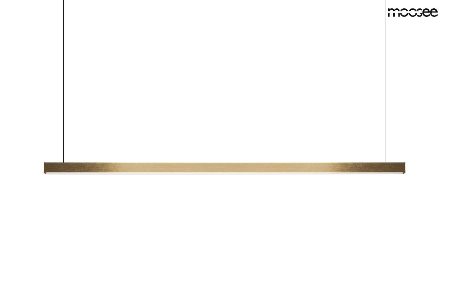 - MOOSEE lampa wisząca LINUS 100 złota. Wykonana ze stali i aluminium w kolorze złotym. Odcień lampy tworzy efekt ombre. Led o ciepłej barwie umieszczony jest na całej długości, zapewniając odpowiednie oświetlenie. Prosta, a zarazem nowoczesna oprawa będzie