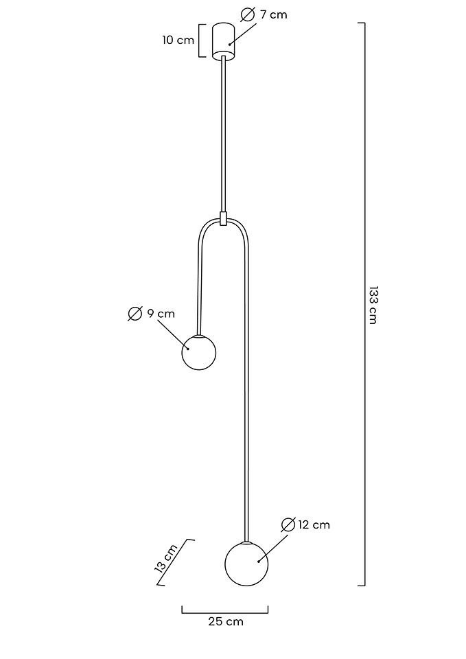 MOOSEE lampa wisząca LOW czarna. Elegancka lampa zbudowana z kulistych, szklanych, mlecznych kloszy umieszczonych na metalowej konstrukcji w kolorze czarnym. Pasuje do klasycznych oraz bardziej nowoczesnych wnętrz, dodając im szyku i przytulnego blasku. Lampa Low doskonale sprawdzi się w pomieszczeniach domowych oraz restauracyjno-hotelowych. Na kloszu mogą wystąpić pęcherzyki powietrza, które są naturalnym efektem ręcznej obróbki szkła. Światło: 2 x G9 max. 40 W (brak w zestawie) Oprawa: wys. 133 cm / szer. 25 cm / gł. 13 cm Klosz: 1 x śr. 9 cm / 1 x śr. 12 cm Mocowanie: wys. 10 cm / szer. 7 cm Montaż: instalacja sufitowa Waga netto: 1,5 kg Wymiary opakowania: 71 cm / 25 cm / 21 cm.Cechy produktu