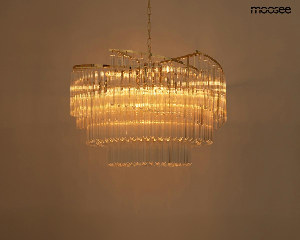 • MOOSEE lampa wisząca LUMA 60 złota. Oprawa oświetleniowa, która zachwyca elegancją i dekoracyjnym akcentem. Metal w połączeniu z kryształem gwarantuje trwałość, jednocześnie nadając luksusowy, efektowny wygląd, doskonały do stylowych wnętrz. Niepowtarzaln