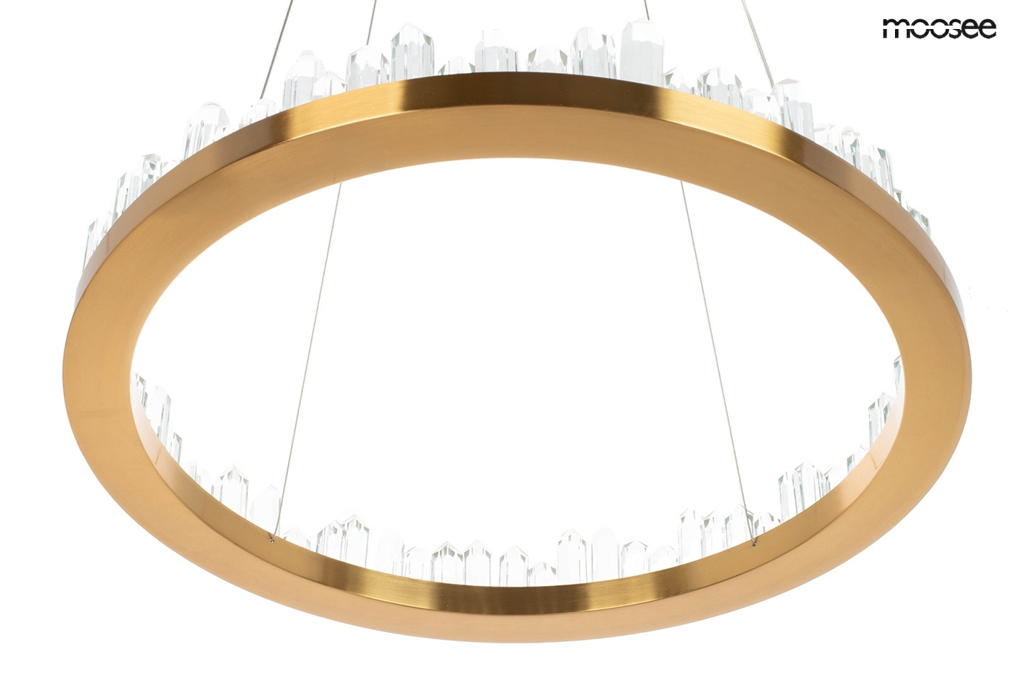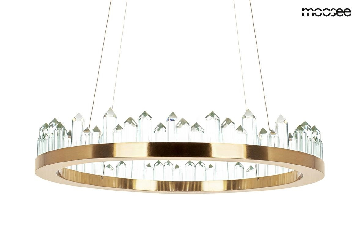 - Lampa wisząca NENUFAR od marki MOOSEE. Elegancką konstrukcję wykonano z połączenia stali nierdzewnej i szklanych kryształów. Ledowe źródło światła umieszczone na całym okręgu, rozświetla kryształy, tworząc świetlne refleksy o ciepłej barwie. Okrągły kszta