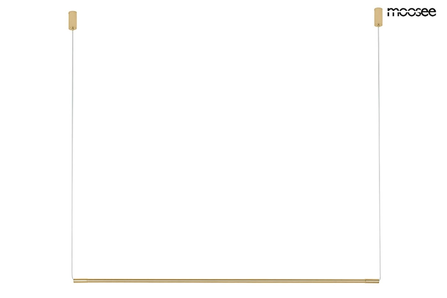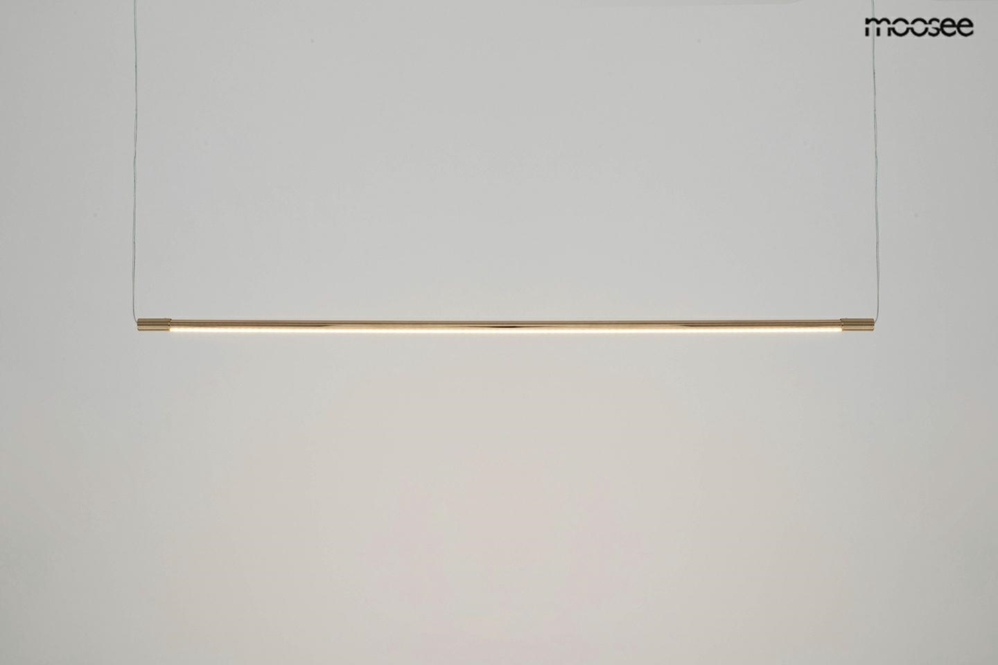 - MOOSEE lampa wisząca OMBRE LEVEL 100 złota W całości wykonana ze stali w kolorze złotym Podłużny, akrylowy klosz skrywa ledowe źródło światła. Minimalistyczny kształt lampy doskonale odnajdzie się w nowoczesnych, jak i industrialnych wnętrzach. Kolekcja l