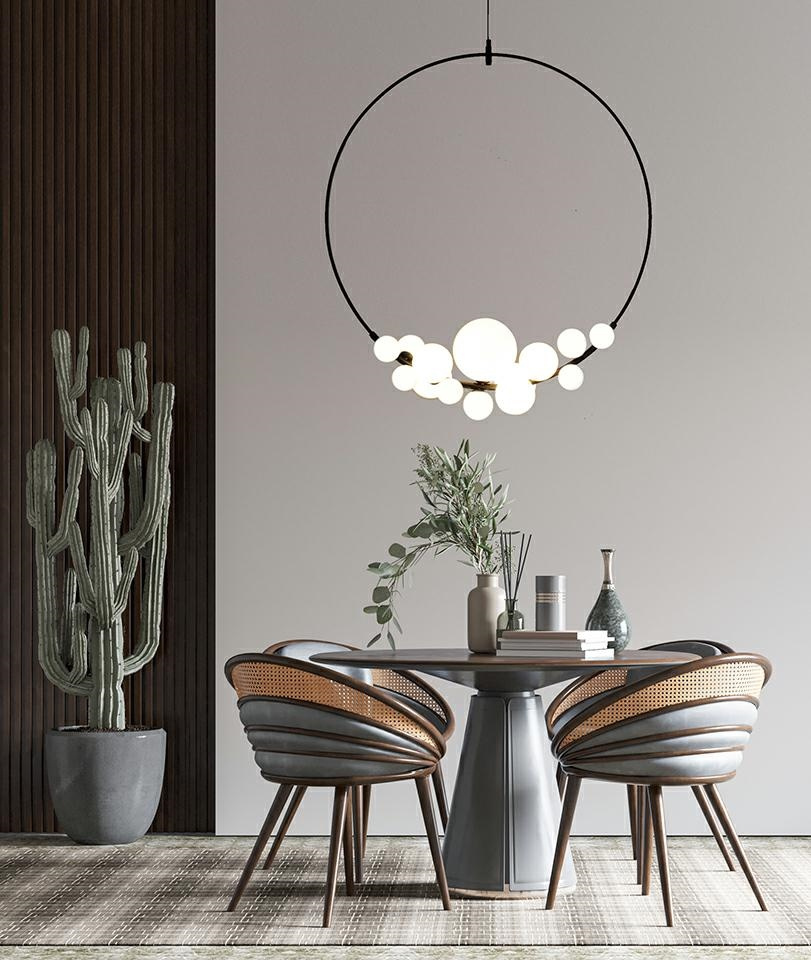 • MOOSEE lampa wisząca ROCIO czarna. Niezwykła propozycja nowoczesnego oświetlenia. Białe, szklane klosze skupione na dole metalowego okręgu tworzą elegancką kompozycję. 14 punktów świetlnych zapewni optymalne oświetlenie, a całość z powodzeniem udekoruje k