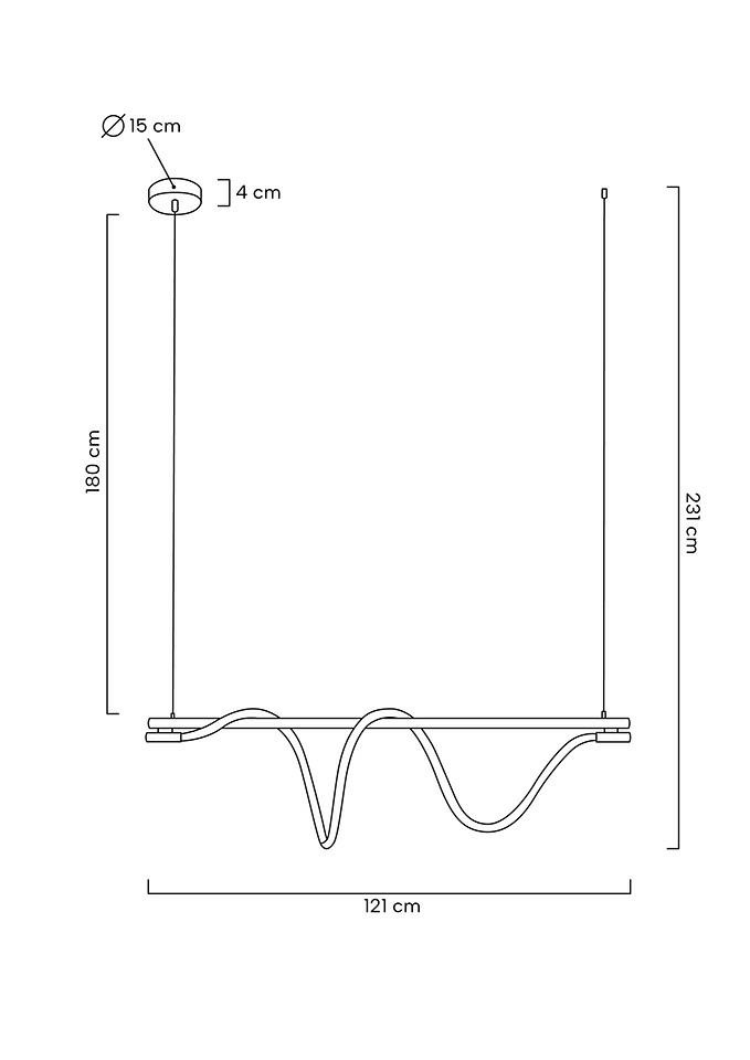 MOOSEE lampa wisząca SERPIENTE złota. Wyjątkowe połączenie stali z tkaniną zawieszone na cienkich linkach. Podłużny stelaż w kolorze złotym przepleciony elastycznym wężem w oplocie z tkaniny, który skrywa ledowe źródło światła. Zestawienie kolorystyczne złota z bielą świetnie odnajdzie się w subtelnych, eleganckich aranżacjach. Światło: LED 22.4 W / 1800 lm / 3000 K Oprawa: wys. 231 cm / szer. 121 cm / śr. 2,5 cm Klosz: śr. 2,5 cm / dł. 190 cm Mocowanie: śr. 15 cm / wys. 4 cm Element mocowanie do sufitu: wys. 3,5 cm / śr. 1,5 cm Przewód: 170 cm Montaż: instalacja sufitowa Waga netto: 2,5 kg Wymiary opakowania: 130 cm / 31 cm / 11 cm.Cechy produktu