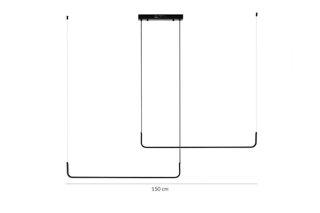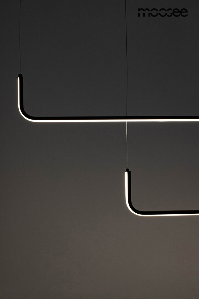 • MOOSEE lampa wisząca SHAPE DUO 120 czarna. Nowoczesna, aluminiowa oprawa w minimalistycznej formie. Dwa niezależne, lecz zintegrowane źródła światła, połączone prostokątną montaturą, można zamontować w różnych kombinacjach, w których ogranicza nas wyłączn