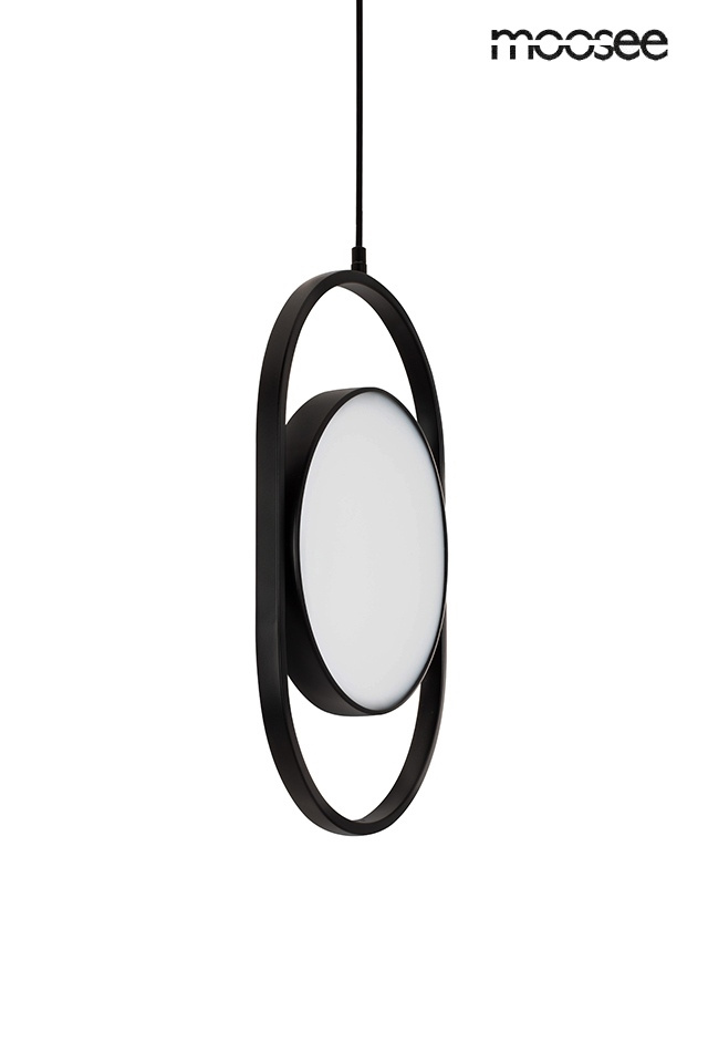 MOOSEE lampa wisząca SPINNER 19 czarna. Idealna propozycja dla zwolenników aranżacji nawiązujących do minimalistycznego stylu. Jedną z największych zalet lampy jest obrotowy klosz z możliwość regulowania źródła światła. Oprawę wykonano z metalu w kolorze czarnym matowym, a osłonę klosza z mlecznego akrylu. Spinner doskonale prezentuje się pojedynczo, jak również w postaci kilku sztuk w różnych rozmiarach umieszczonych obok siebie. Światło: LED 9 W / 720 lm / 3000 K Wymiary: wys. 210 cm / szer. 29 cm / gł. 9 cm Oprawa: wys. 32 cm / szer. 18,5 / gł. 16 cm Klosz: śr. 16 cm / gł. 3,5 cm Mocowanie: wys. 3 cm / śr. 9 cm Przewód: 180 cm Montaż: instalacja sufitowa Waga brutto: 1,7 kg.Cechy produktu