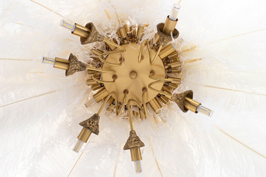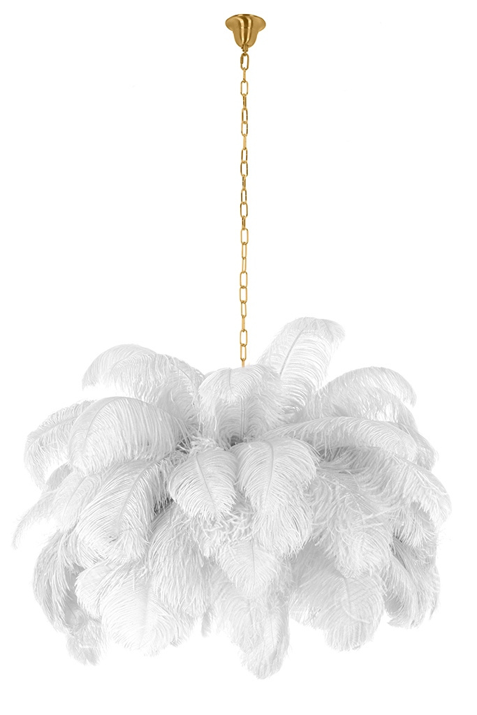 MOOSEE lampa wisząca TIFFANY 135 biała mosiądz / naturalne pióra