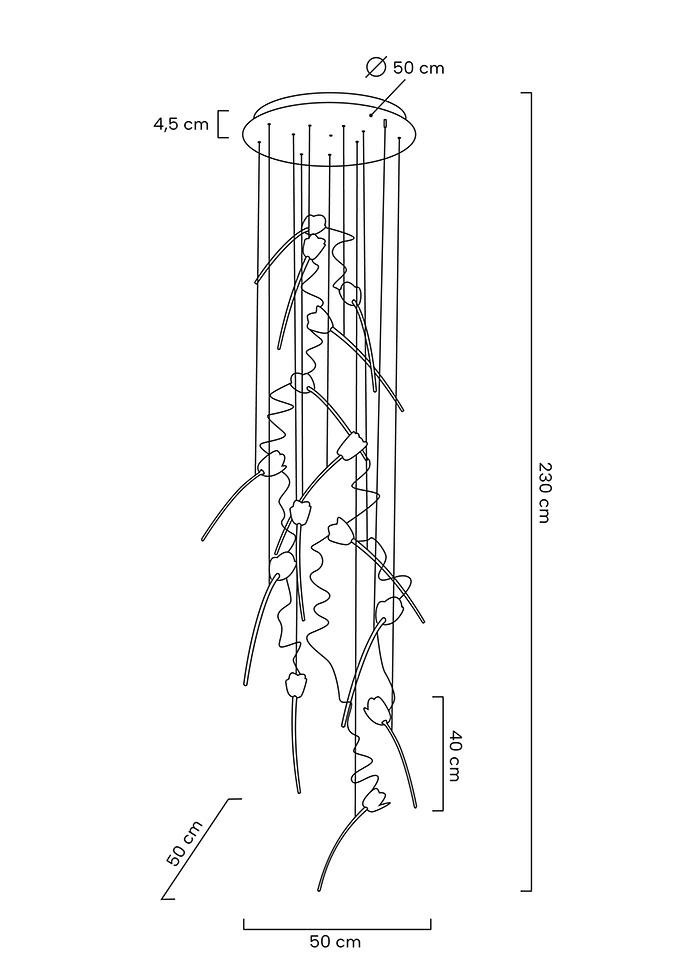 MOOSEE lampa wisząca TULIPPE 14 DISC złota. Piękna, wyjątkowa oprawa, która nie tylko oświetli, ale i ozdobi nie jedno wnętrze. Przezroczyste, akrylowe klosze imitują kwiaty, tulipany, które w niezwykły sposób rozpraszają strumienie światła. Złote wykończenie ze stali dodaje elegancji oraz wyrafinowania. Tulippe to designerska lampa, która będzie przyciągać wzrok w Twoim salonie. Polecamy zapoznać się z całą kolekcją. Światło: 14 x G4 max. 1.3 W / 220V (brak w zestawie) Oprawa: wys. 230 cm / szer. 50 cm / gł. 50 cm Tulipan: wys. 40 cm / szer. 6,5 cm / gł. 6,5 cm Mocowanie: śr. 50 cm / wys. 4,5 cm Przewód: 190 cm Montaż: instalacja sufitowa Waga netto: 9,5 kg Wymiary opakowania: 56 cm / 56 cm / 30 cm.