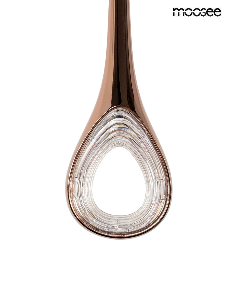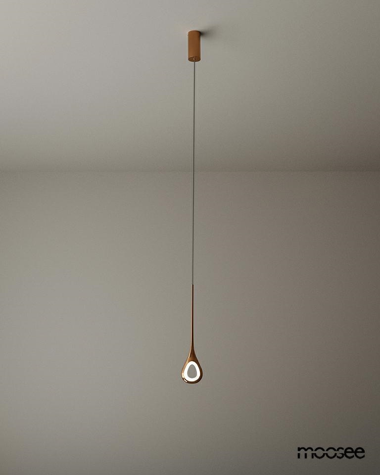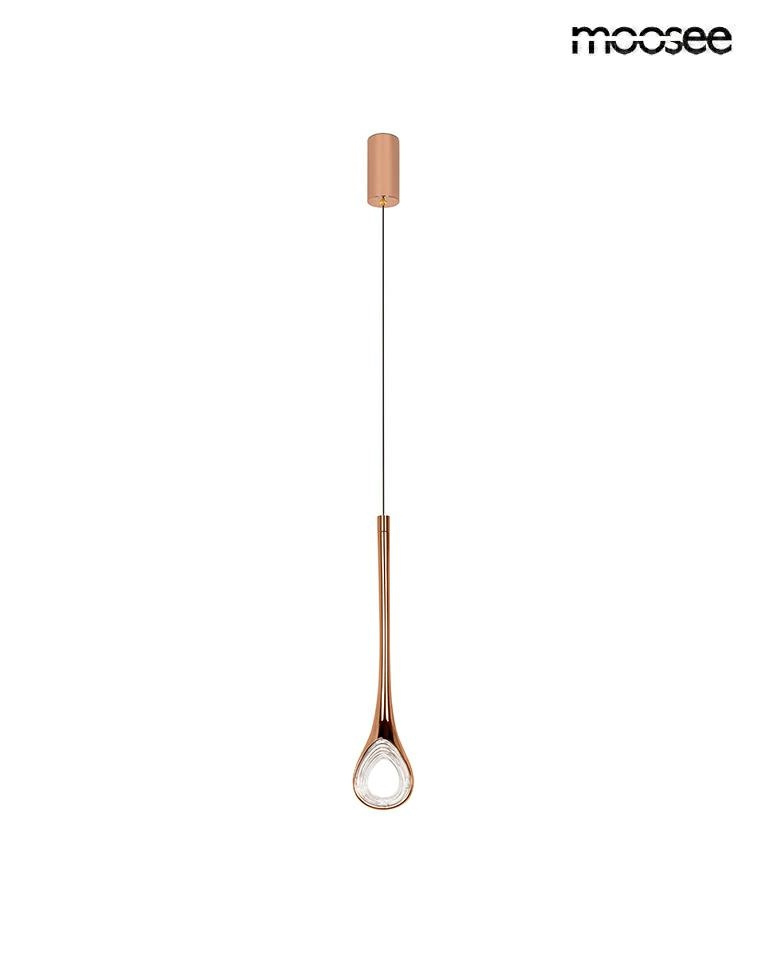 • MOOSEE lampa wisząca VUELO miedziana. Nowoczesne i stylowe oświetlenie, które doskonale wpasuje się w eleganckie wnętrza. Wykonane z wysokiej jakości aluminium i akrylu, cechuje się minimalistycznym designem. Kształt przypominający kroplę, nadaje wyjątkow