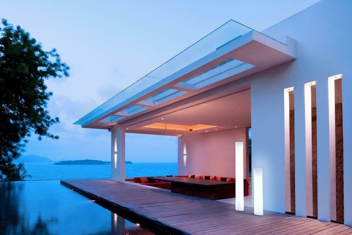 - Fity 100 cylindryczna podłogowa lampa od New Garden. New Garden to hiszpańska marka specjalizująca się w wyjątkowych meblach i lampach ogrodowych. Całość wykonana jest z polietylenu w kolorze białym, odpornym na wysokie temperatury oraz promieniowanie UV.