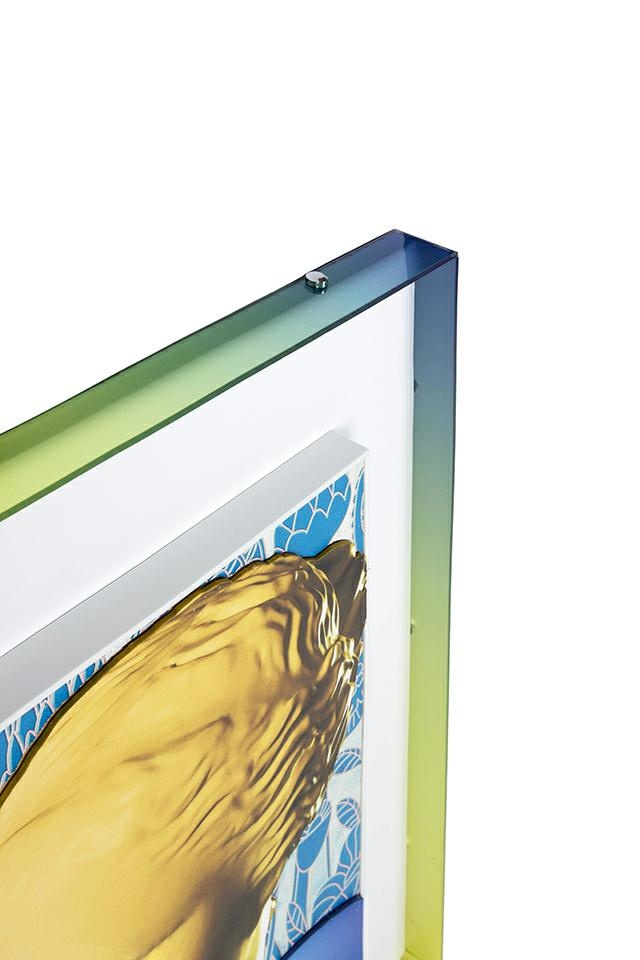Obraz FANCY APOLLO 80x80 cm. Nowoczesne dzieło sztuki, które zachwyca swoją żywą niebiesko-żółtą kolorystyką. Wykonany na druku i oprawiony w kolorową akrylową ramę, przyciąga wzrok i będzie stanowił wyrazisty akcent w każdym wnętrzu. Przedstawia znanego boga Apollo, symbolizującego piękno, światło, życie, śmierć, muzykę, prawdę, prawo, porządek oraz patrona sztuki i poezji, ukazanego w nowoczesny sposób na kwiatowym tle. Apollo otulony przez niebieski balon dodaje kompozycji humorystycznego wyrazu. Fancy Apollo to artystyczne dzieło, które wprowadzi design i kunszt do Twojego wnętrza, podkreślając jego unikalny charakter. Wymiary: wys. 80 cm / szer. 80 cm / gł. 3 cm.Cechy produktu