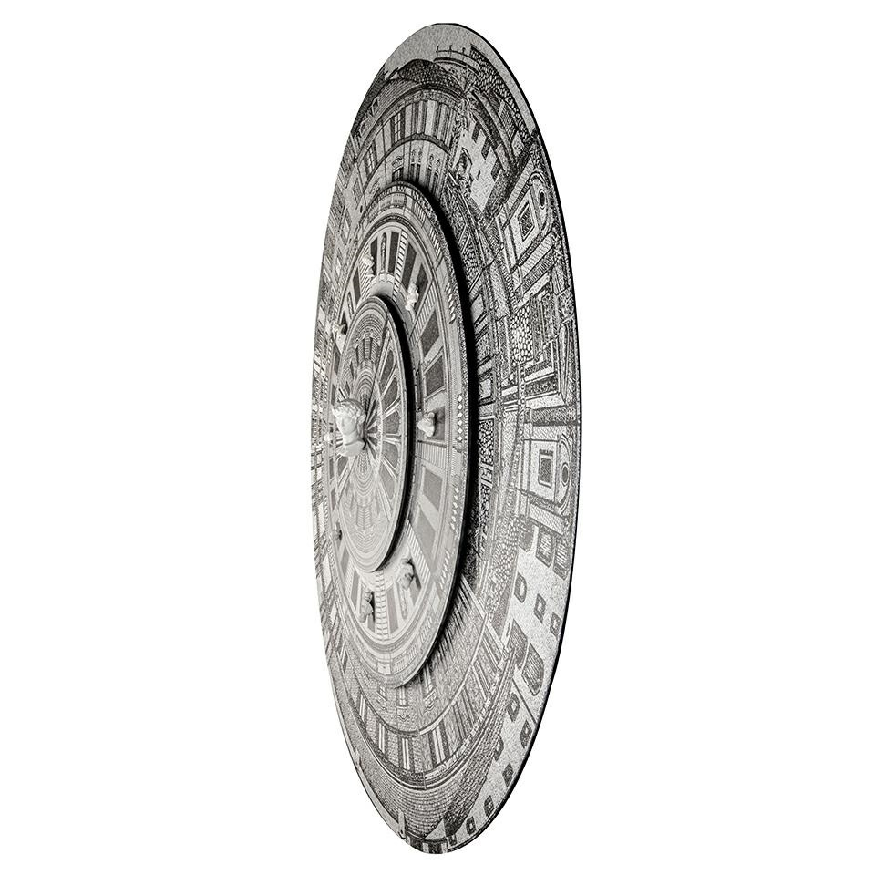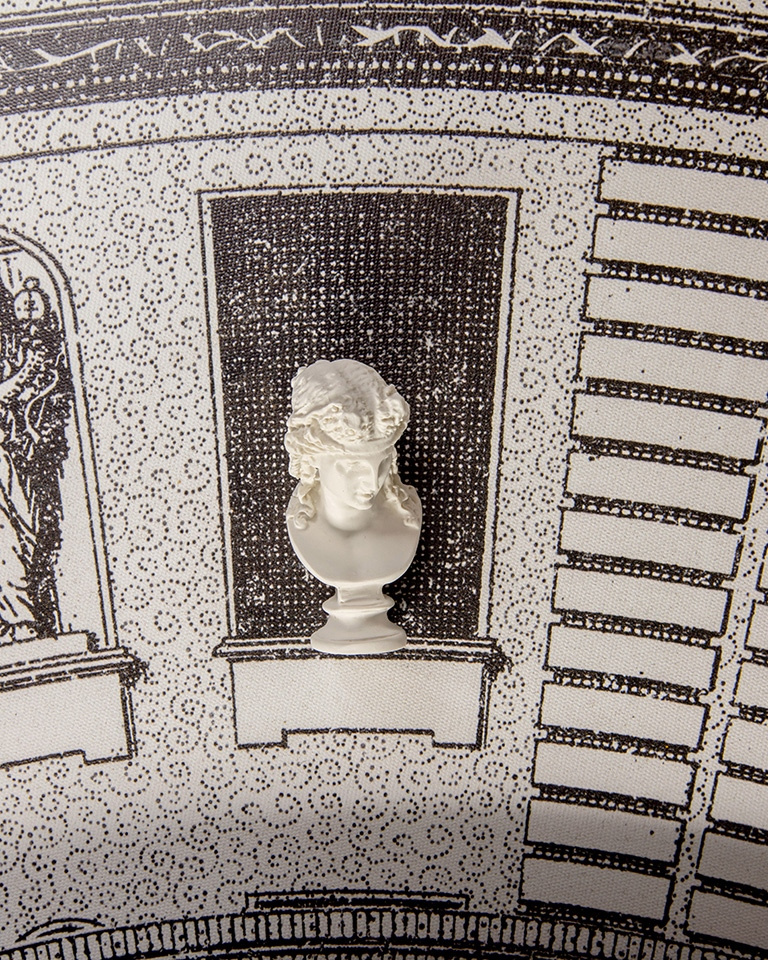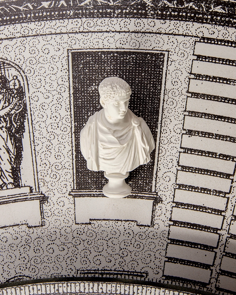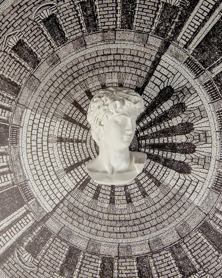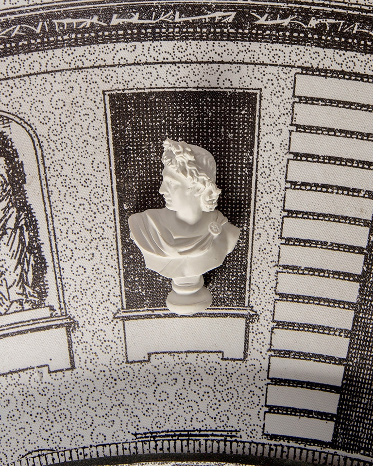 Obraz FISH EYE CITY 200x200 cm. Unikalne dzieło sztuki, które wyróżnia się oryginalną koncepcją w postaci okrągłej planszy, która przypomina widok starożytnego miasta z lotu ptaka. Całość zaprojektowano w sposób, który sprawia wrażenie trójwymiarowej głębi, co dodatkowo potęguje efekt iluzji. Wyjątkowość tego obrazu podkreślają rzymskie figurki wykonane z białej żywicy, które można dowolnie rozkładać na planszy, co pozwala na personalizację i tworzenie własnych kompozycji. Plansza, wykonana z drewna z nadrukiem, ma również częściowo obrotowy mechanizm, umożliwiający dostosowanie układu miasta według indywidualnych preferencji, co czyni to dzieło jeszcze bardziej interaktywnym. To niesamowite dzieło przyciąga wzrok swoim artystycznym stylem. Fish Eye City to idealna propozycja dla osób ceniących zarówno sztukę, jak i architekturę, a także dla tych, którzy szukają niecodziennych rozwiązań dekoracyjnych do swojego wnętrza. Wymiary: wys. 200 cm / szer. 200 cm / gł. 12 cm.Cechy produktu