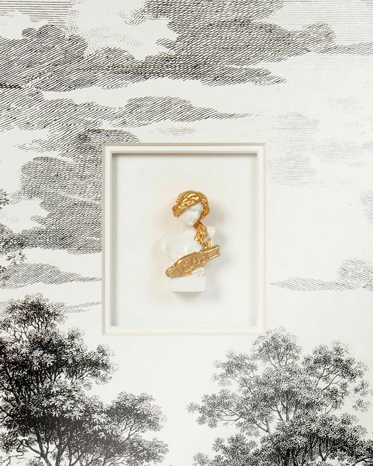 - Obraz HEAD OF STATE 1 50x60 cm. Elegancka i nowoczesna grafika, wykonana w stonowanej kolorystyce i oprawiona w stylową złotą ramę. W centrum kompozycji umieszczono rzeźbę kobiety ze złotym akcentem, która dodaje nowoczesnego charakteru i przyciąga uwagę.