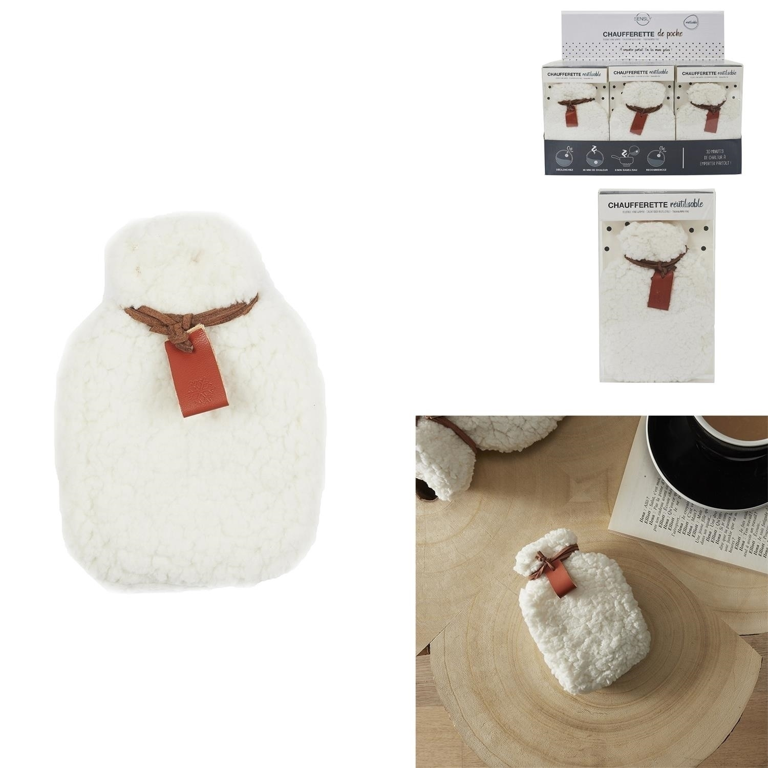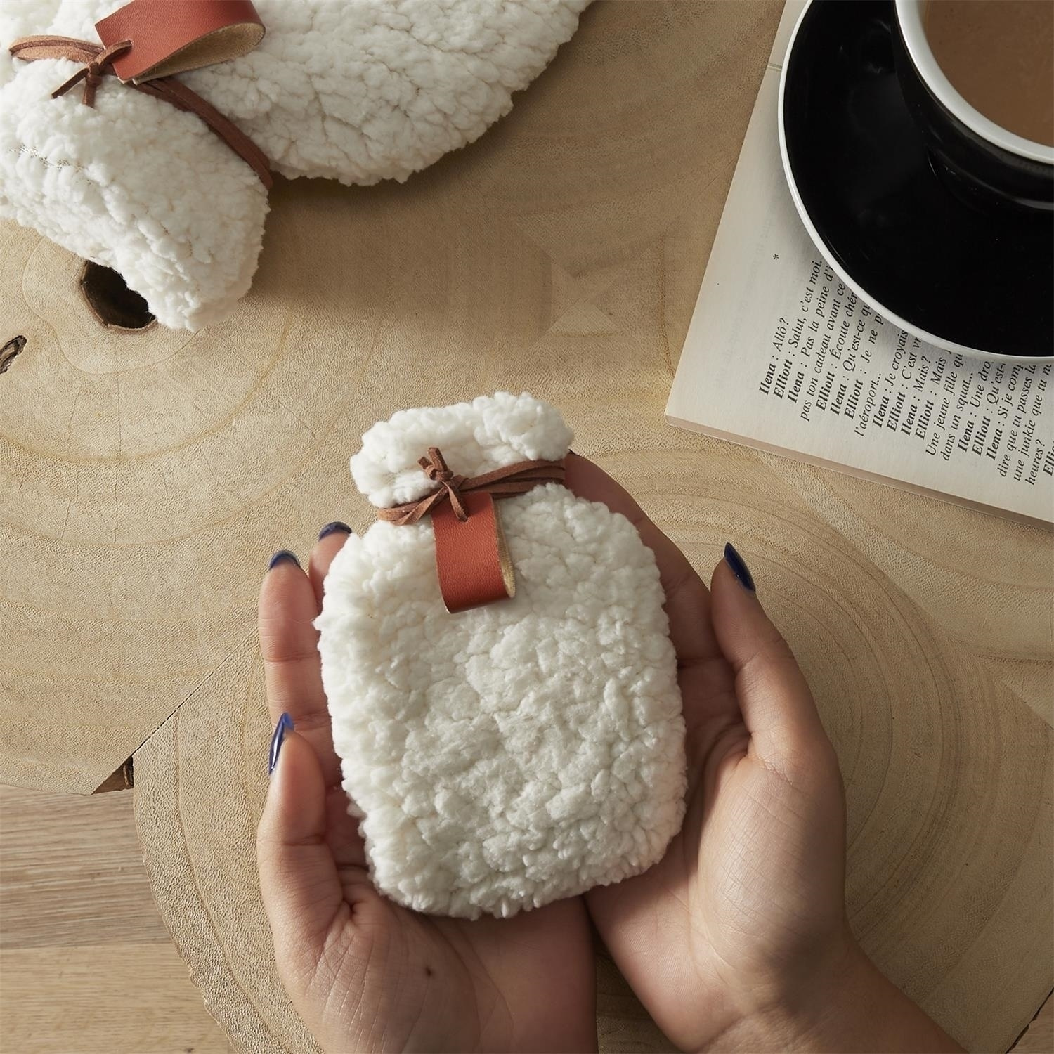 - Puchaty ocieplacz do rąk pozwoli przetrwać nam mroźne, zimowe dni. Ogrzewacz o kształcie termoforu został wykonany z przyjemniej w dotyku tkaniny oraz ozdobiony został rzemykiem. Ocieplacz zaczyna grzać po przełamaniu wyczuwalnej pastylki, która znajduje