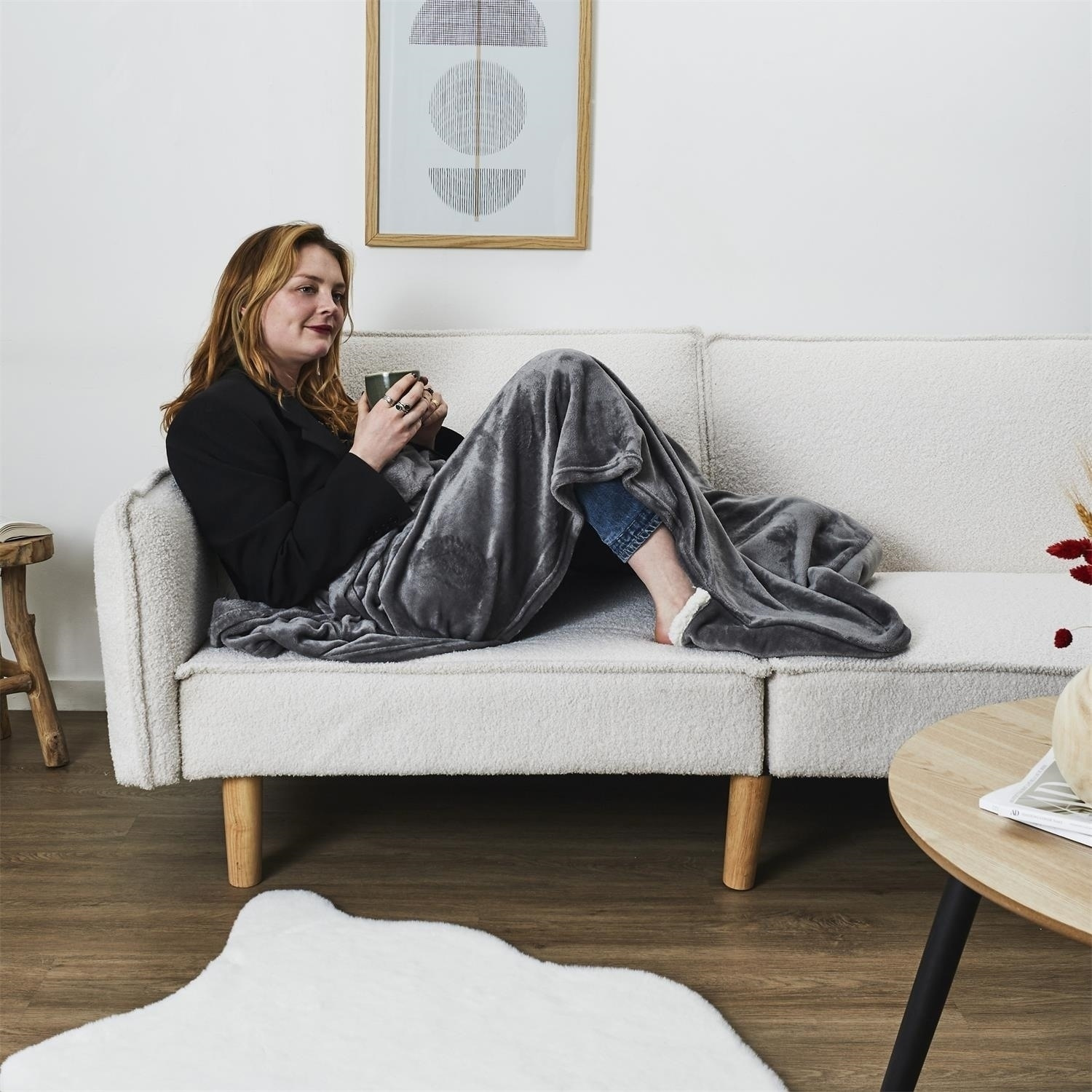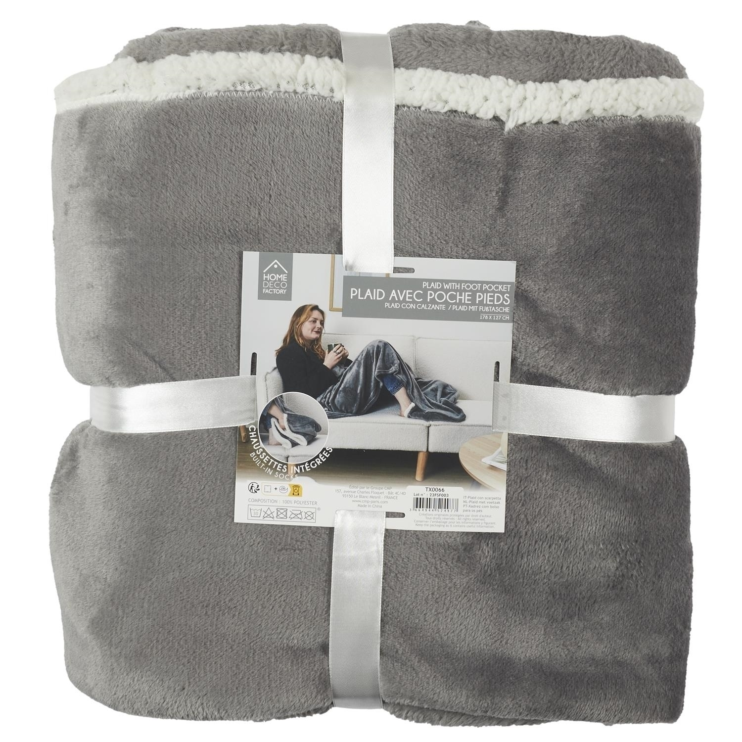- Szary, miękki koc z kieszenią na stopy to idealne rozwiązanie dla osób, które często marzną. Ogrzanie stóp po cięzkim, chłodnym dniu przyniesie ukojenie, a myśl, że wystarczy je tylko wsunąć w specjalnie przygotowaną dla nic kieszeń tylko zachęca do skorz