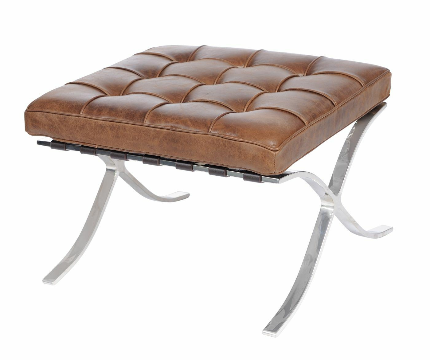 - Jest to zaprojektowany w 1929 roku podnóżek, który powstał na zamówienie, i stanął w niemieckim pawilonie na wystawie w Barcelonie.,Charakterystycznie powyginana w kształt litery "X" chromowana podstawa oraz pikowana w kwadraty skóra naturalna to najbardz