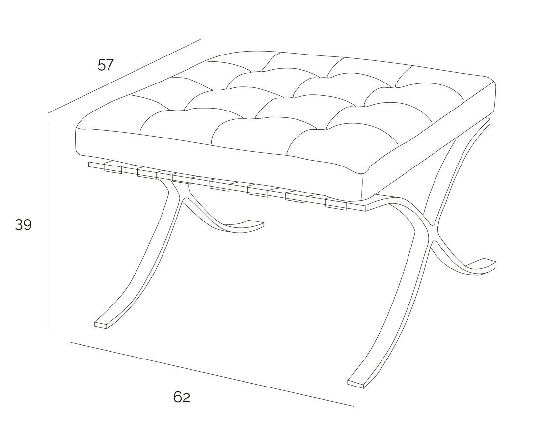 Jest to zaprojektowany w 1929 roku podnóżek, który powstał na zamówienie, i stanął w niemieckim pawilonie na wystawie w Barcelonie.,Charakterystycznie powyginana w kształt litery "X" chromowana podstawa oraz pikowana w kwadraty skóra naturalna to najbardziej charakterystyczne cechy tego podnóżka. Uzupełnieniem tego produktu jest fotel Barcelona i Barcelona stolik.,Podnóżek wykonany całkowicie ze skóry naturalnej.,Cechy produktu