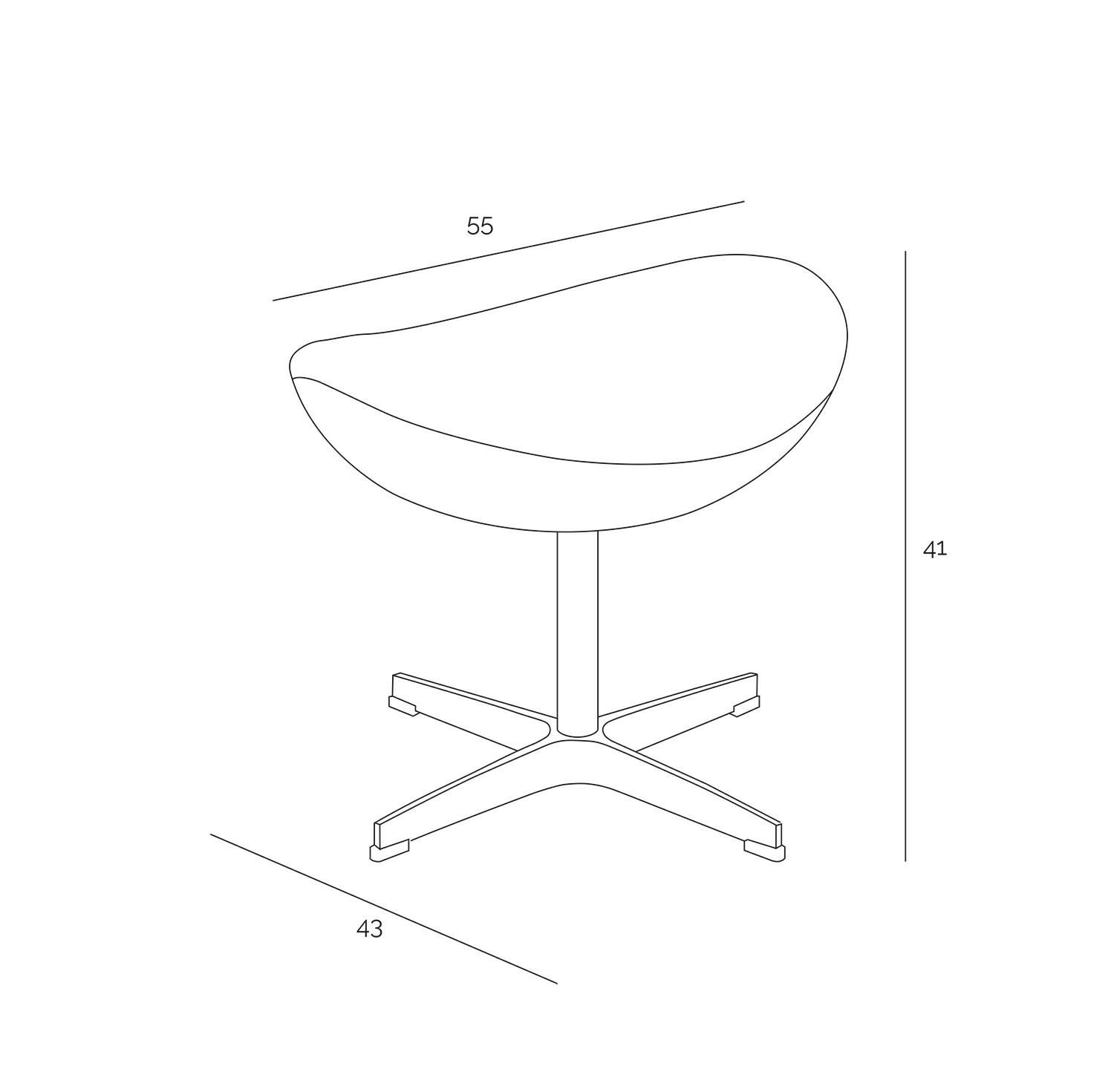 Podnóżek to mebel, który wraca do łask za sprawą swojej funkcjonalności. Nowoczensy podnóżek Jajo inspirowany projektem Egg to mebel, który sprawdzi się zarówno jako pojedynczy element wystroju jak i w komplecie z fotelami nowoczesnymi takimi jak Fotel Egg. Ponadczasowy design oraz prosta forma sprawią, że odnajdzie się on w każdym wnętrzu. Podnóżek wykonany został z kaszmiru oraz chromowanego metalu i stanowi idealne uzupełnienie fotela Jajo. Podnóżek jest obrotowy, wymaga montażu, jego maksymalne obciążenie wynosi 120kg. Wymiary kartonu: 59cm x 43cm x 48cm Max. Ilość w opakowaniu: 1sztCechy produktu