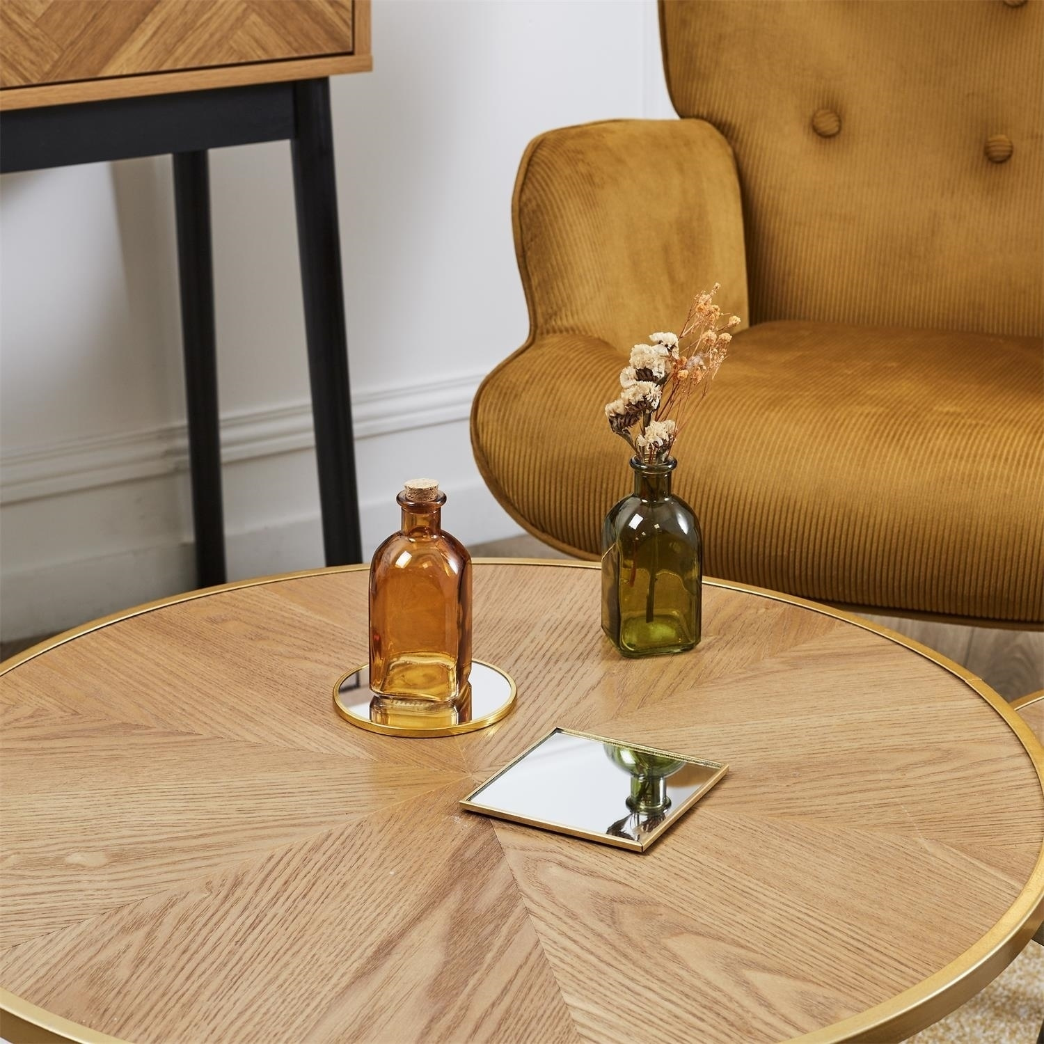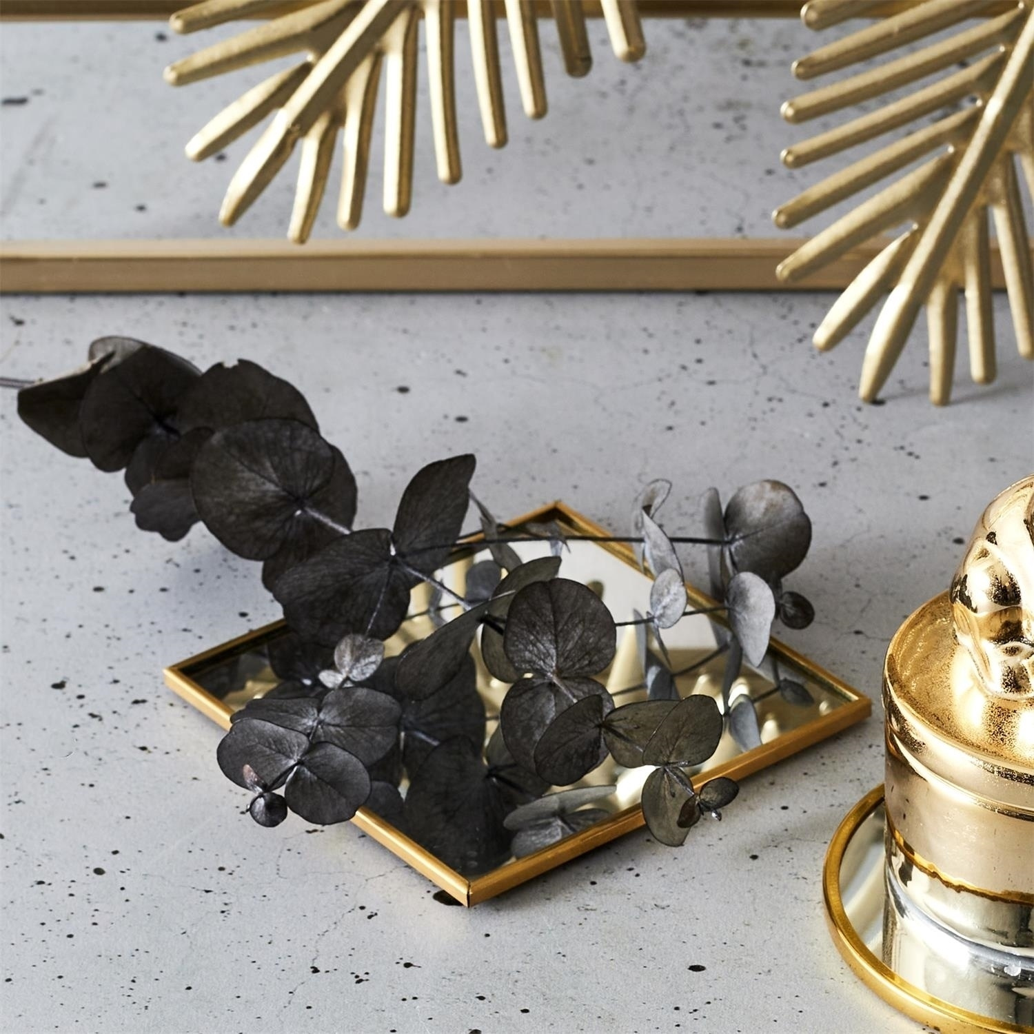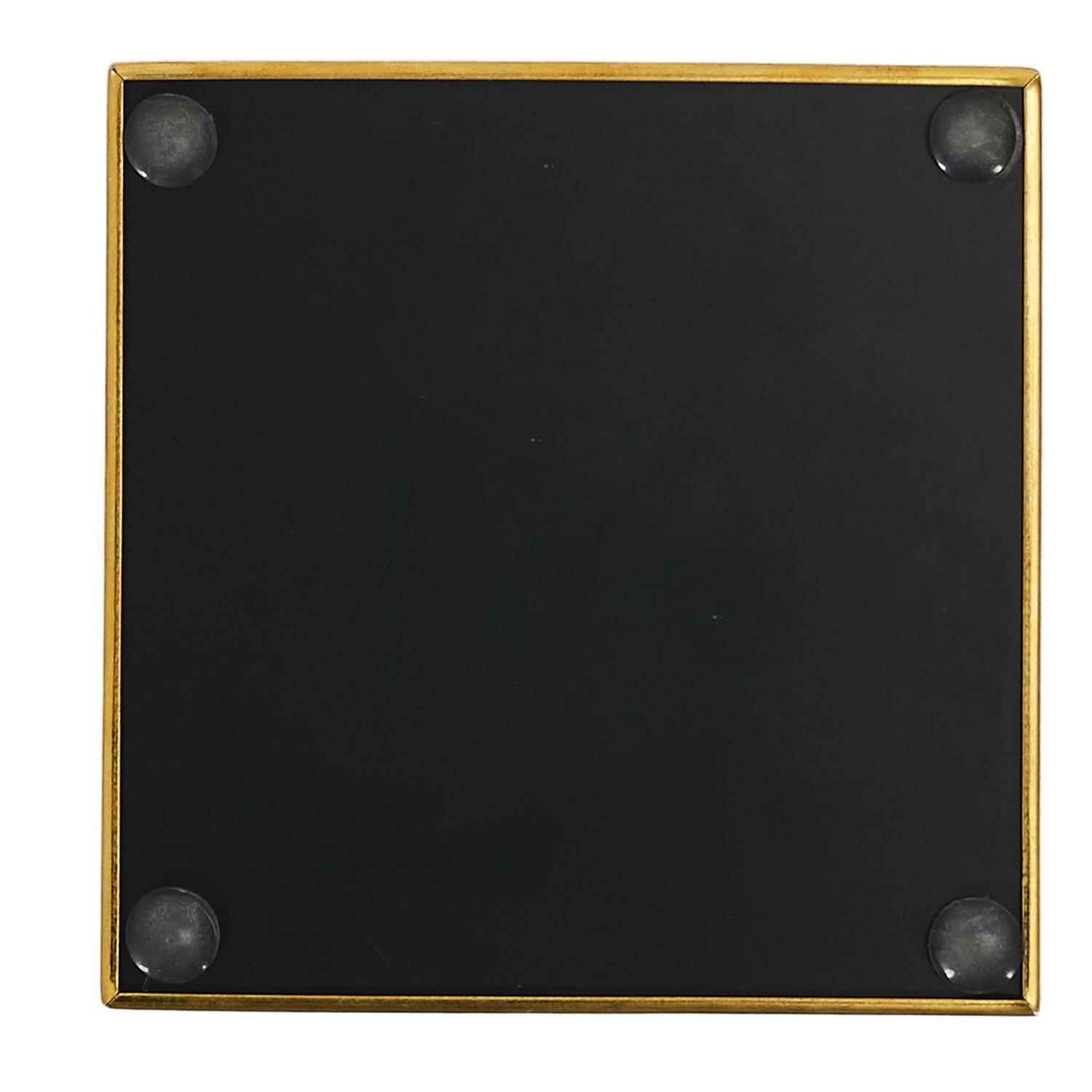 Elegancka kwadratowa podstawka w kolorze złotym. Jej nowoczesny, minimalistyczny design doskonale komponuje się z każdym wnętrzem, dodając mu subtelnego stylu. Wykonana z trwałego materiału, zapewnia stabilność i pewne trzymanie akcseorii. Doskonała do toaletki, biurka lub łazienki, gdzie może służyć jako elegancki element dekoracyjny i praktyczny. Długość: 10 cm Wysokość: 0,5 cm Głębokość: 10 cm Waga: 55 g Materiał: Szkło, mosiądzCechy produktu