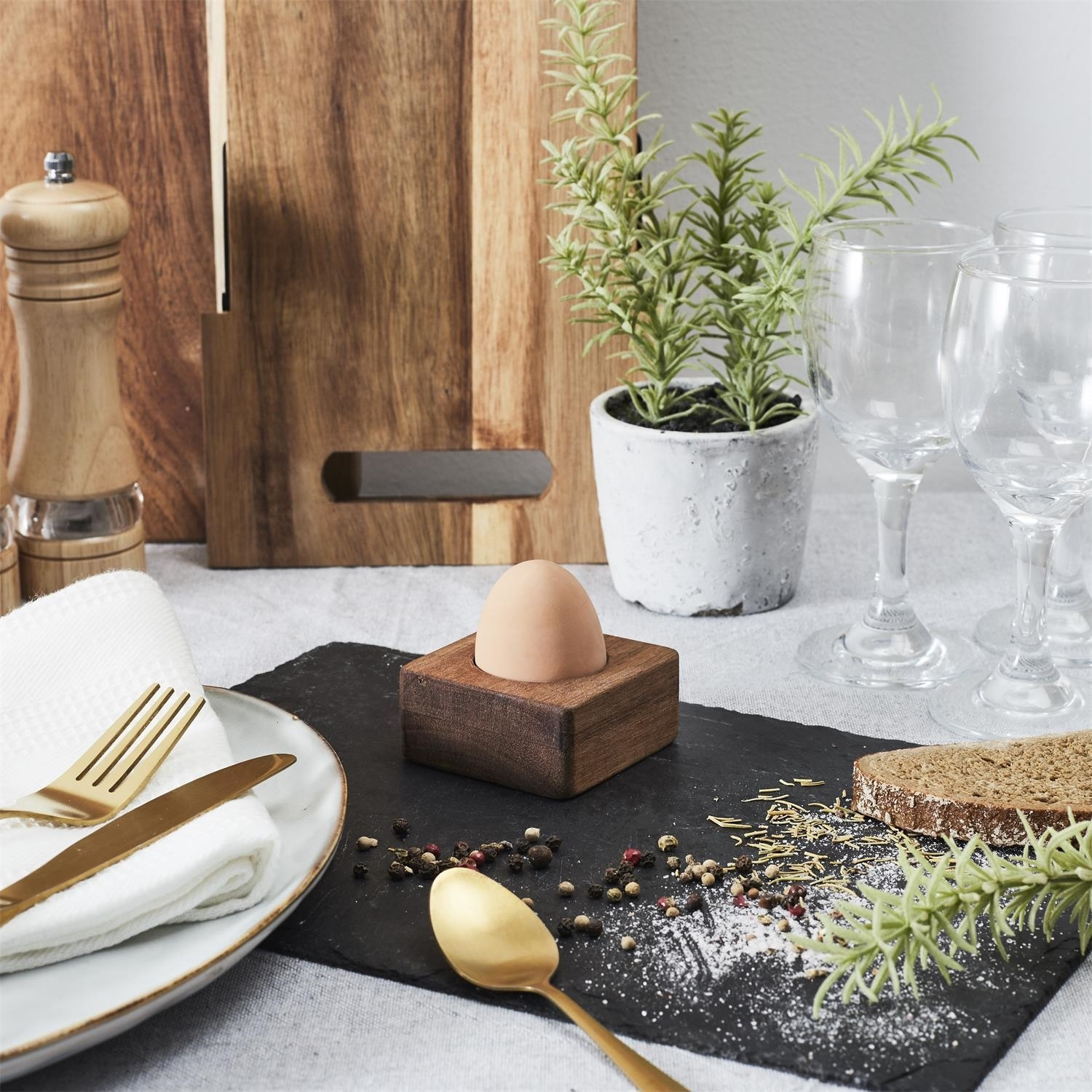 odstawka na jajko z litego drewna akacjowego to nie tylko funkcjonalny pojemnik, który pozowli nam na eleganckie zaserowania jajka na miekko. Ze względu na użycie naturalnych materiałów podstawka jest ciekawa i nietypowa. Będzie wyjątkową dekoracją stołu w stlu japadi lub boho.Cechy produktu