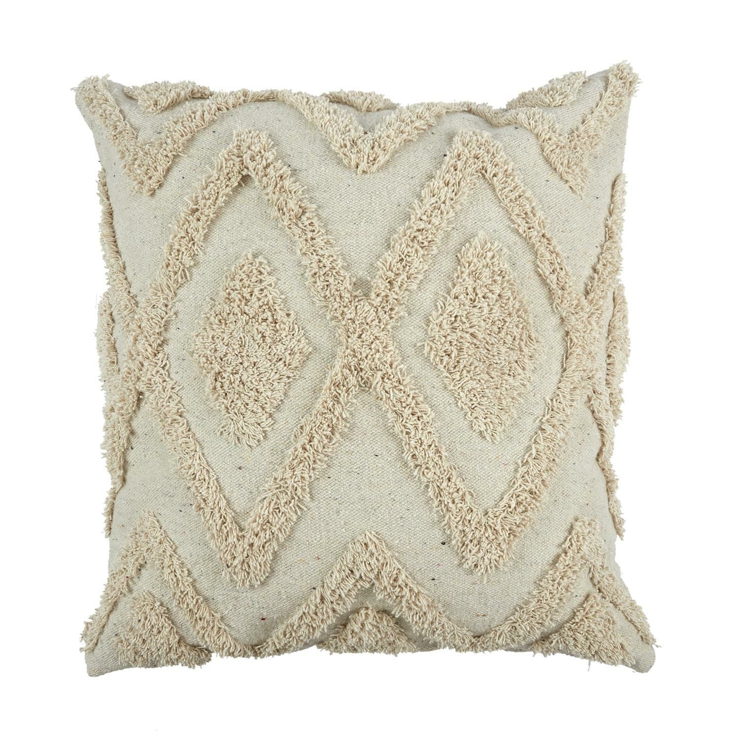 Poduszka o wymiarach 40x40 cm o ciekawym wyplocie będzie ozdobą salonu w naturalnym stylu boho lub skandynawskim. Poduszka o ozdobnym przodzie i gładkim bawełnianym tyle doda uroku kanapie lub fotelowi. Miękka i miła w dotyku poduszka ciekawie komponuje się z pledem o tej samej strukturze.Cechy produktu