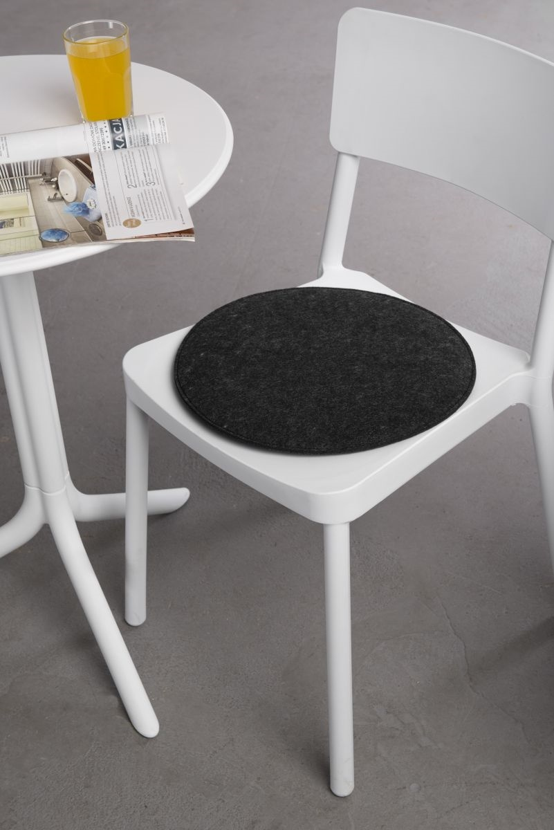 - Okrągła, filcowa poduszka na krzesło designerski akcent w Twoim mieszkaniu. Wykonana została z filcu syntetycznego jednostronnie impregnowanego. Wypełnienie to elastyczna pianka poliuretanowa. Poduszka doskonale sprawdzi jako element użytkowy jednocześnie