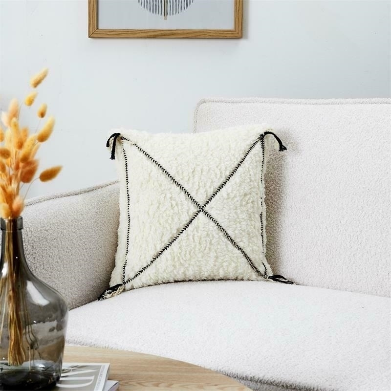 Poduszka Sherpa biała z czarnym wzorem